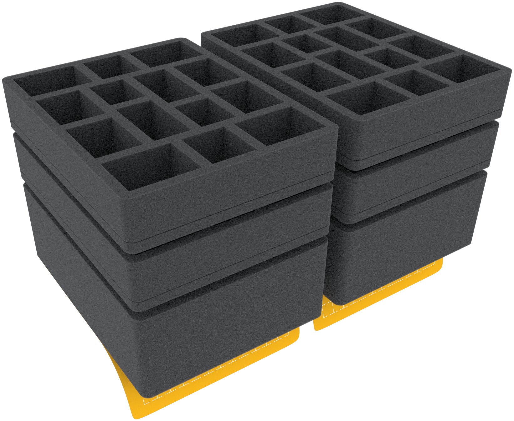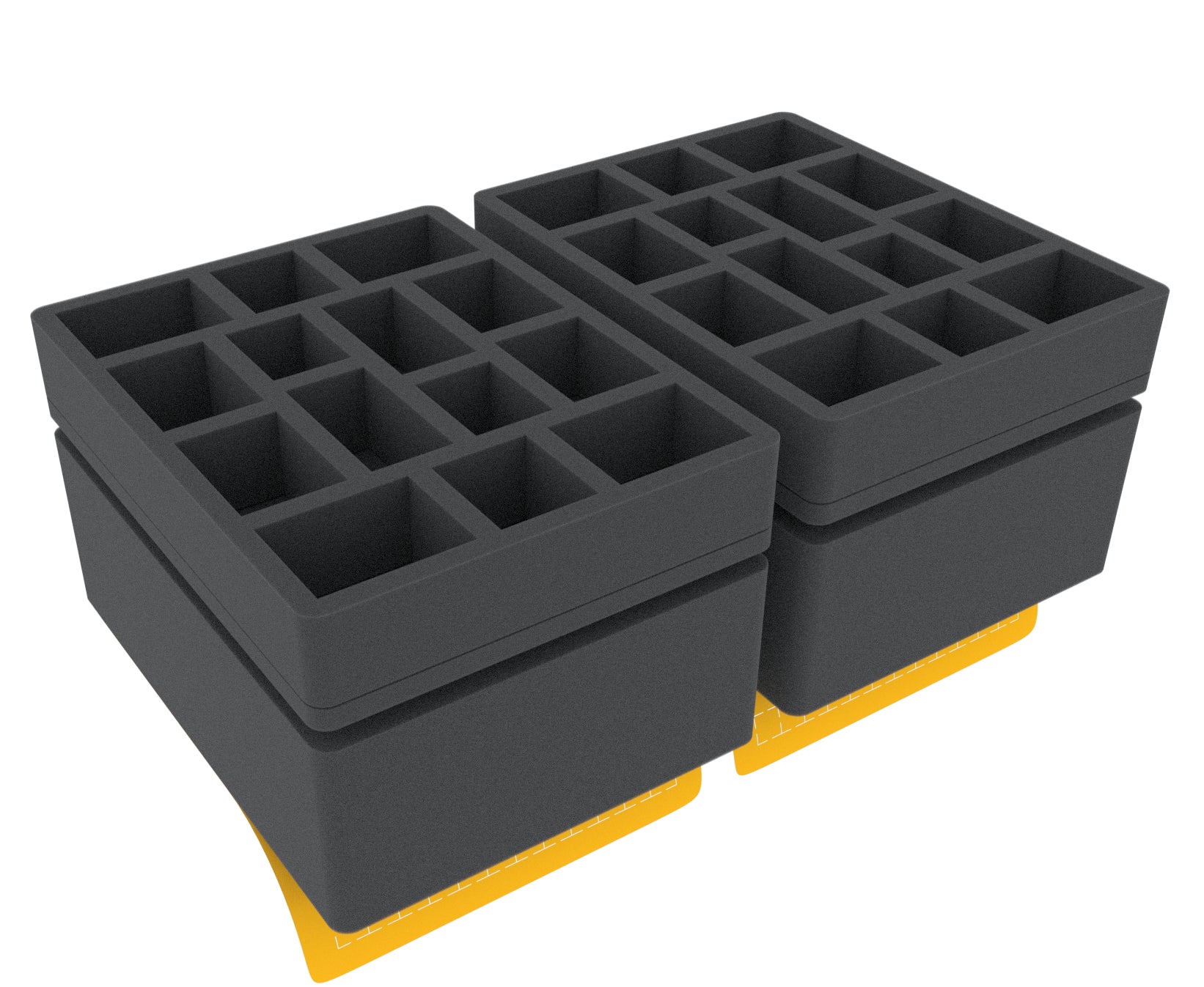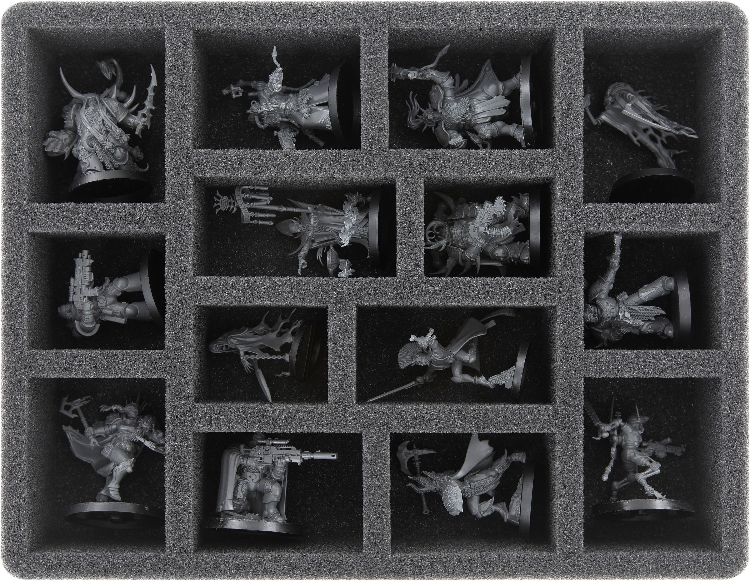 - 4 GWB-Size foam trays each with 14 compartments for miniatures on 40 mm base (CRMEMH050BO).