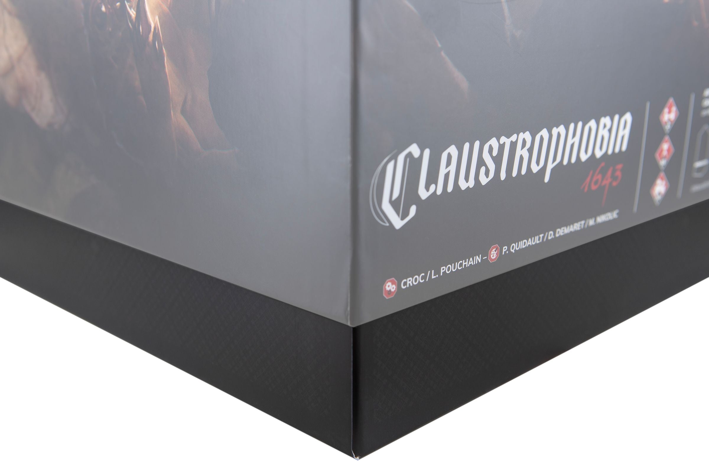 - The set fits exactly into the original „Claustrophobia 1643“ game box by Monolith Games