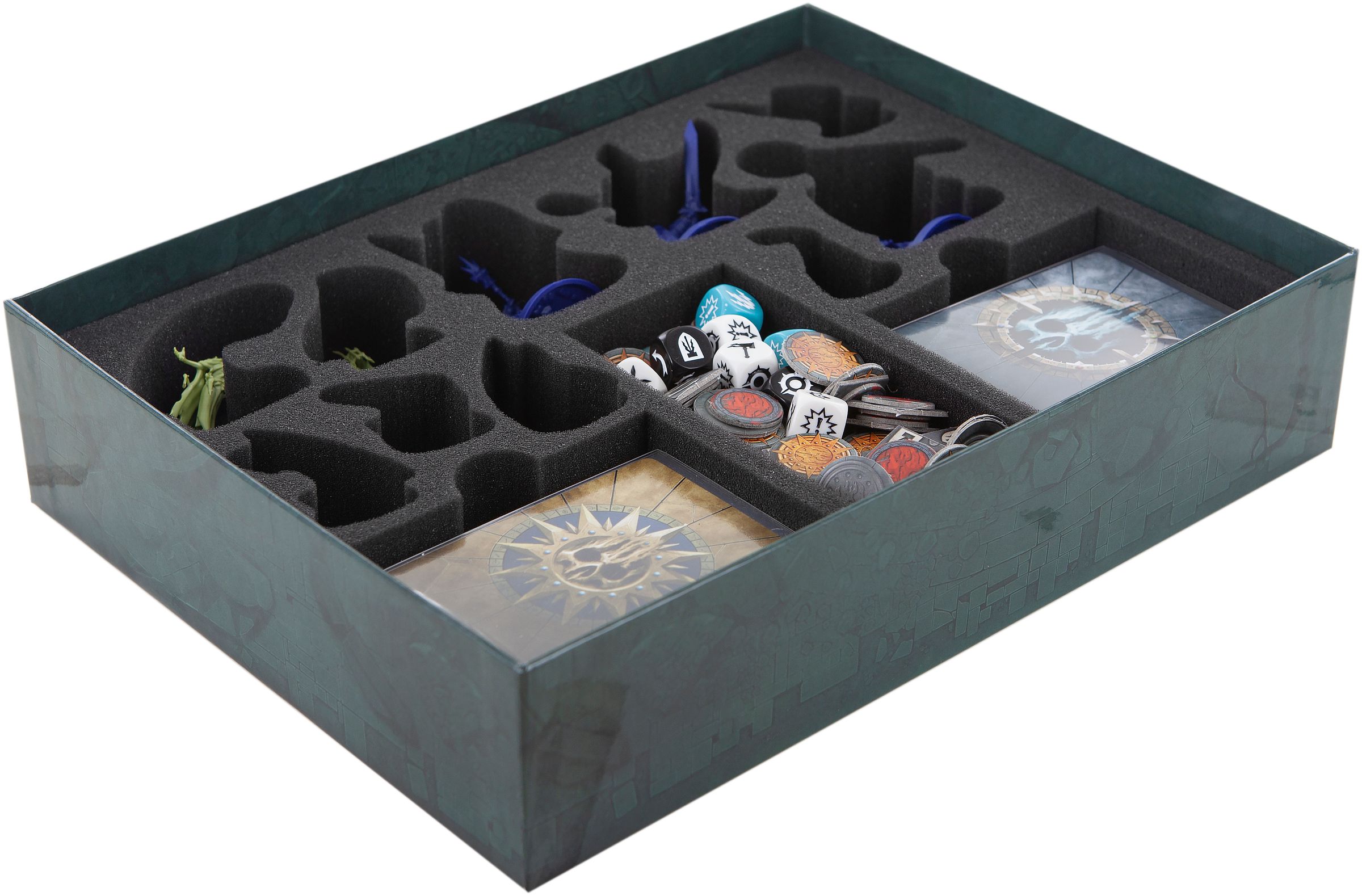 Order and protection for miniatures and game material do not require magic. With this foam tray set for the Nightvault core game box, you can do this without spells and ceremonial staves.