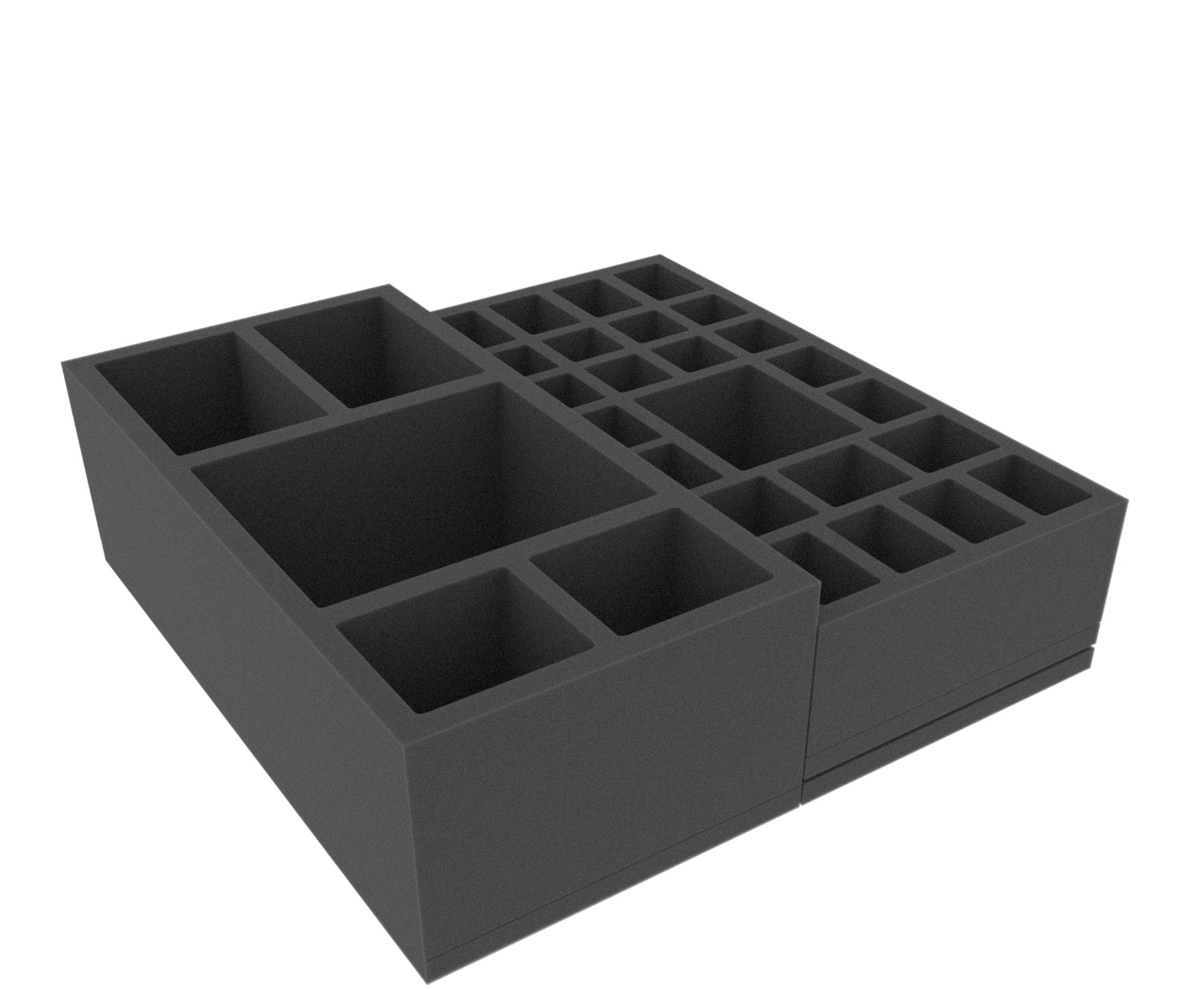 The included foam toppers complete the set. This way, the miniatures are securely packed all around and during transport, nothing bumps against the lid of the box.
