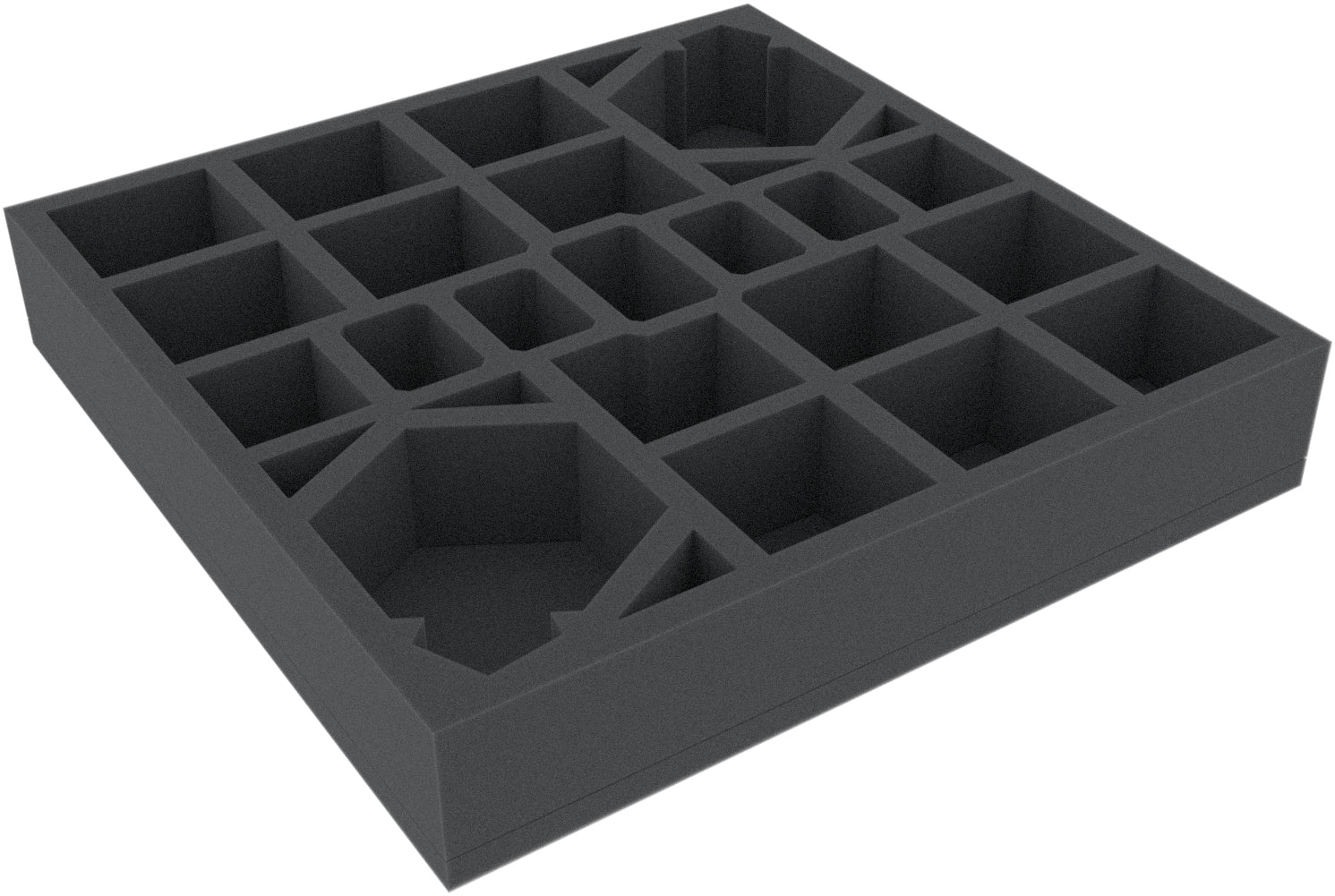 - The foam tray has the dimensions: 285 mm x 285 mm x 50 mm total height (40 mm usable height + 10 mm foam base)