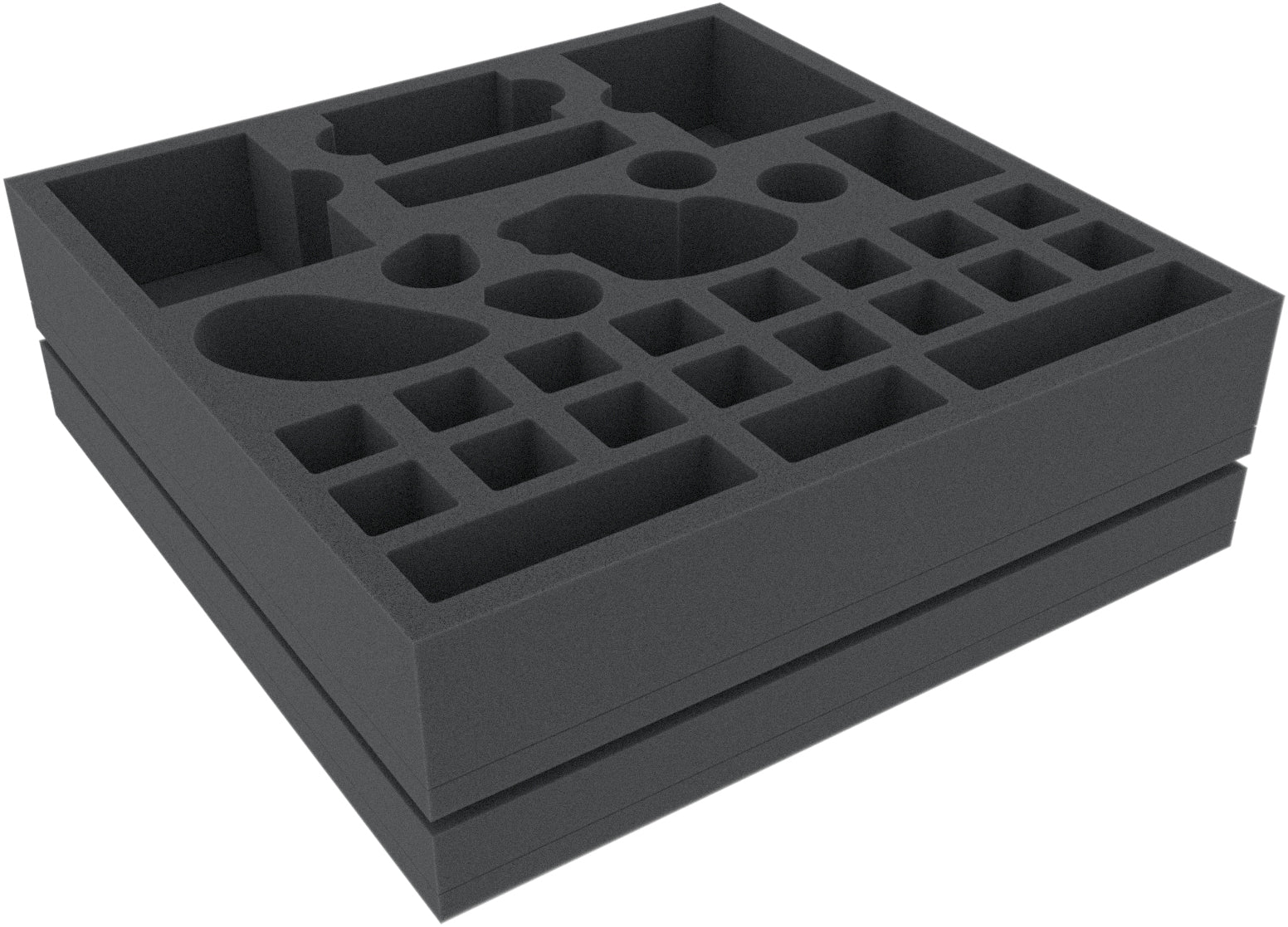 The set is completed with the matching foam topper. With this, the miniatures are completely surrounded by foam. On the topper there is still room for the rulebook and the scenario book.