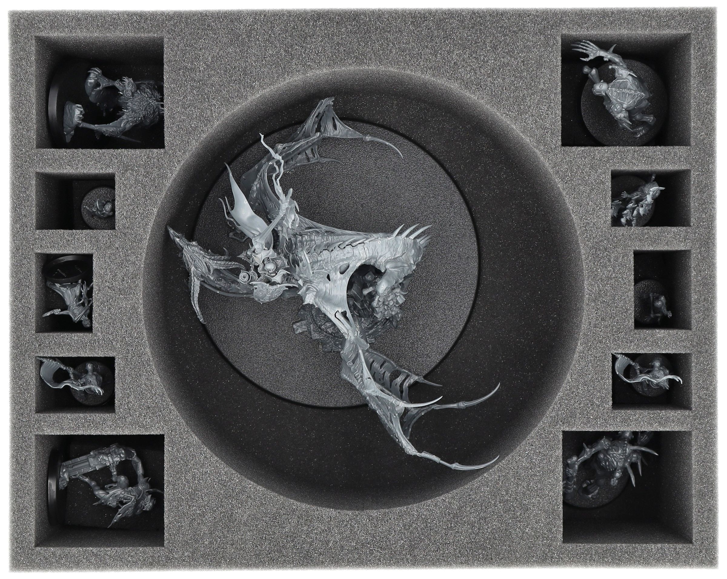 The fact that one of the most powerful vampires in the Realm is also one of the most awkward models to transport in your Soulblight Gravelords collection need not be a cause for tragedy. With this Feldherr foam set, you can easily ensure that Prince Vhordrai, Lord of the Crimson Keep, arrives on the battlefield safely, undamaged, and in all his glory.