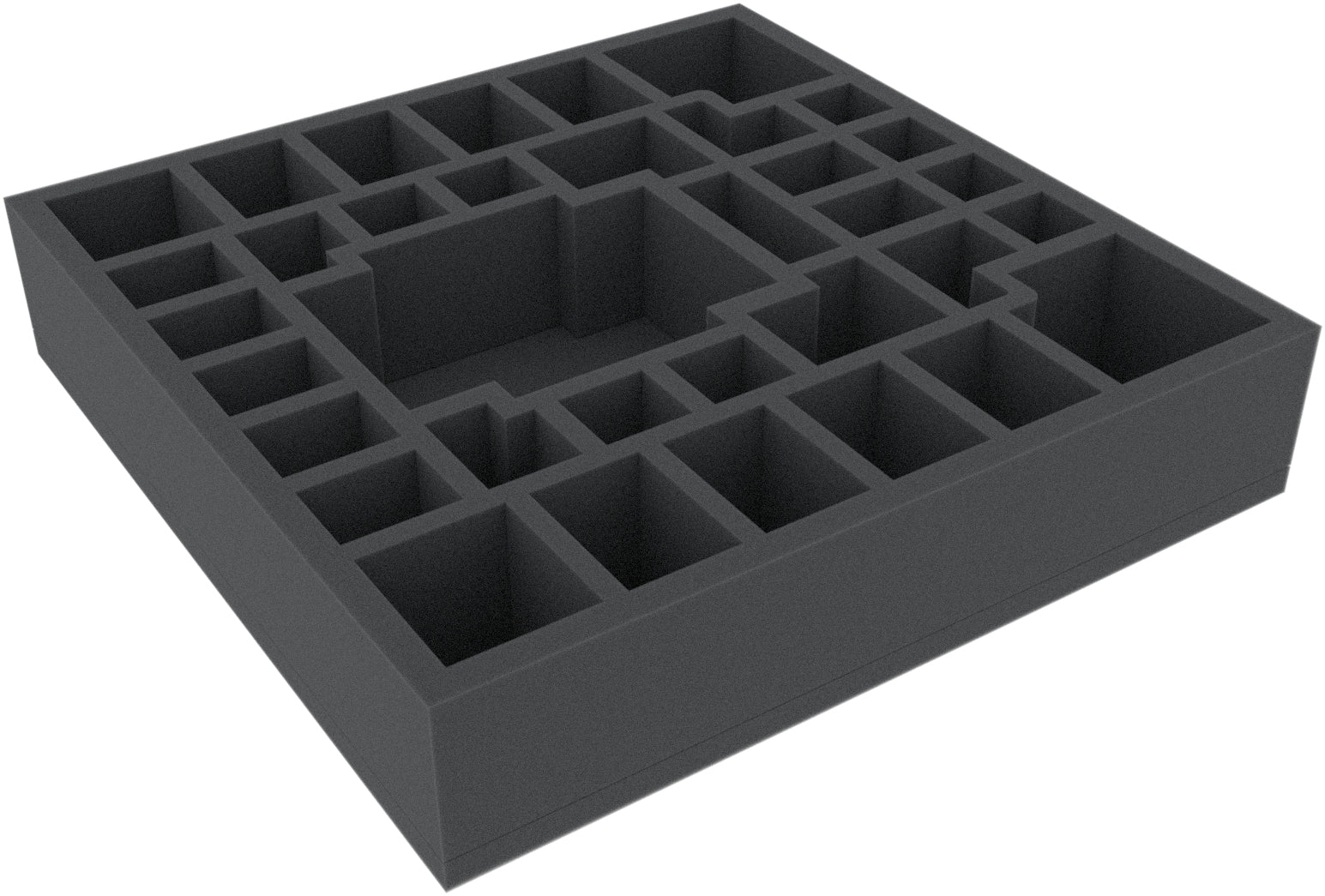 - The foam tray has the dimensions: 295 mm x 295 mm x 60 mm total height (50 mm usable height + 10 mm foam base)