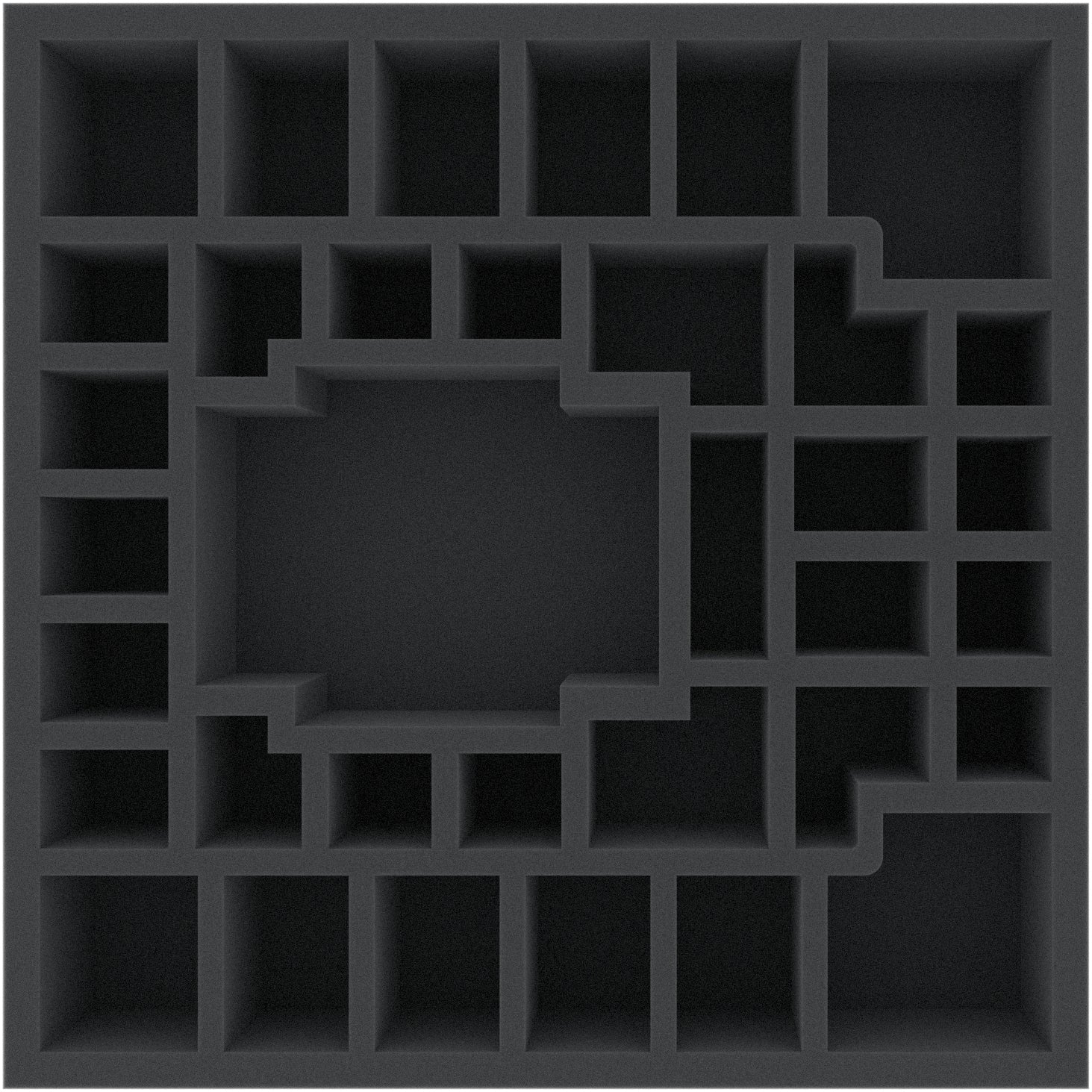 - Provides space for all 32 miniatures and the cards from the box. All cards also fit with sleeves. The Plastic Dashboard Trays and the Campaign Sheet Pad can be placed on the foam topper.