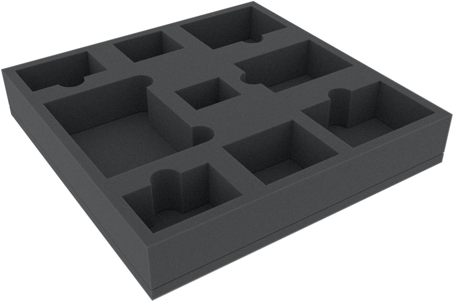 - The foam insert has the dimensions: 295 mm x 295 mm x 50 mm total height (40 mm usable height + 10 mm foam base)