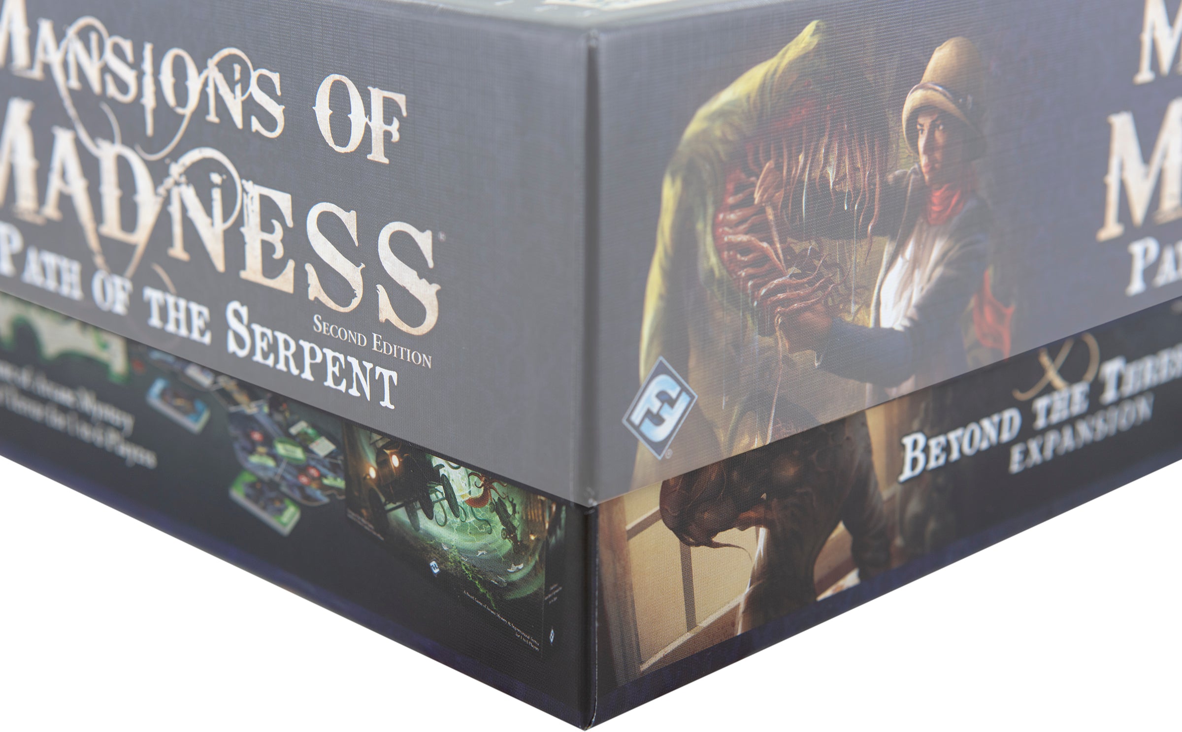 - The set fits exactly into the original board game box of the Mansions of Madness Second Edition expansion "Path of the Serpent" by FFG.