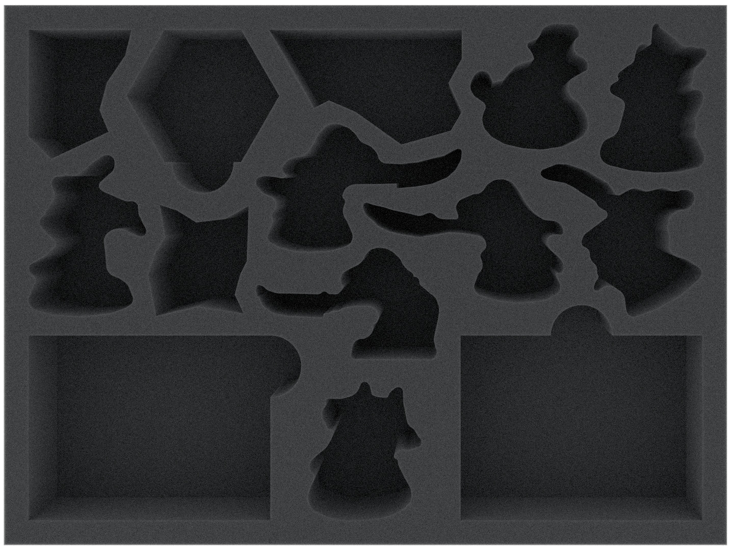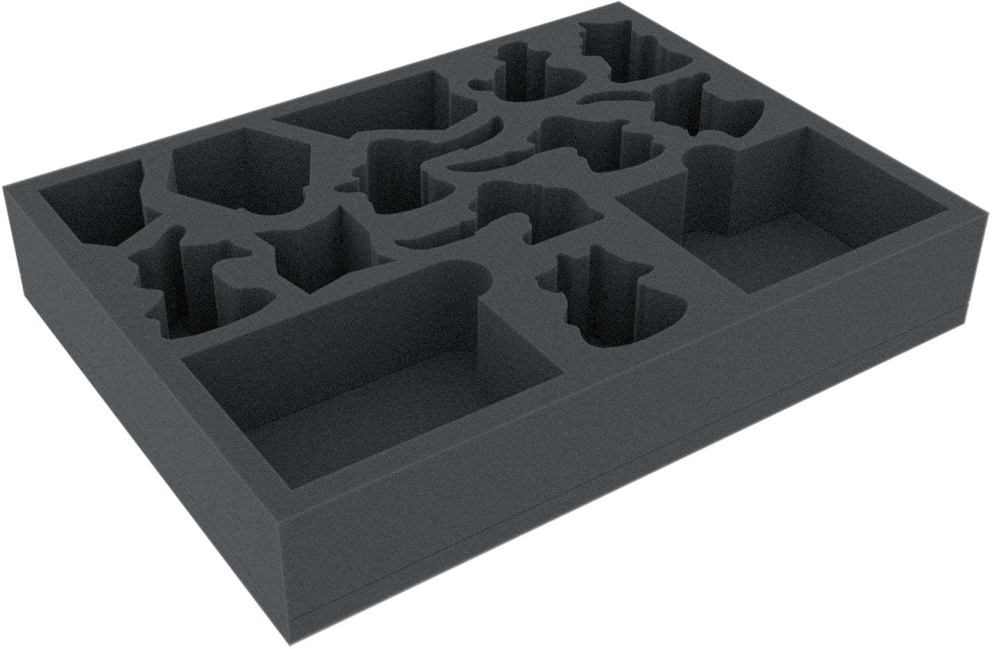 Thanks to the custom-cut compartments, the miniatures have a tight fit. This ensures that the figures do not slip or bump against each other during transport. The soft, fine-pored foam prevents bending or breaking of fine details just as reliably as scratches and chipping paint on your painted miniatures.
