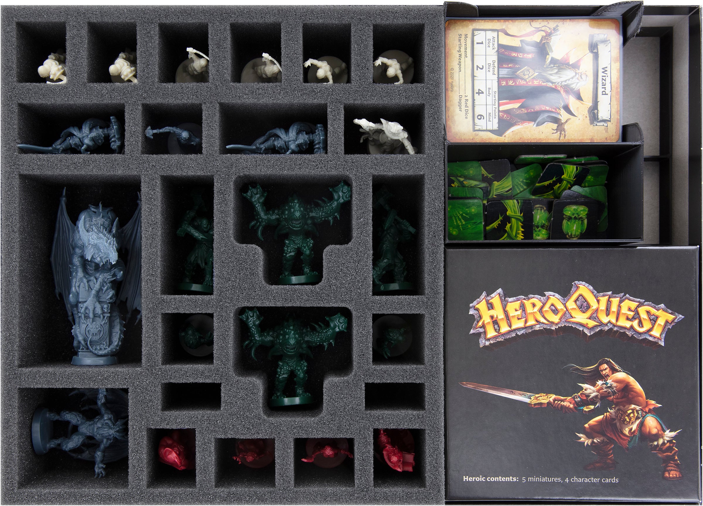 - The set provides space for all miniatures and all contents from the “Mythic Box” for the “HeroQuest (2021)” Mythic Tier pledge by Hasbro.