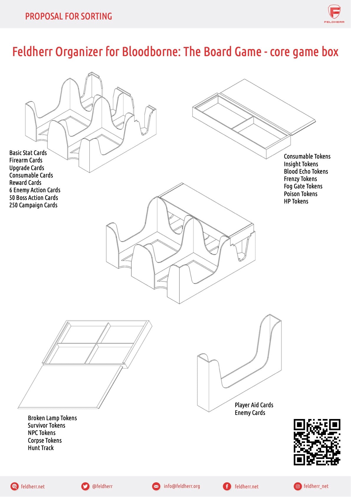 - The set fits into the original board game box of the "Bloodborne" core game by CMON.
