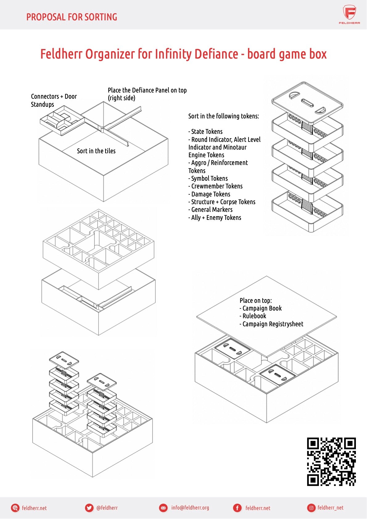 - The set fits inside the original board game box of the "Infinity Defiance" Core Game from Corvus Belli.