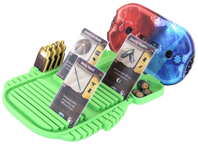 - Due to the inclined slots, the cards and tokens are clearly visible while playing.