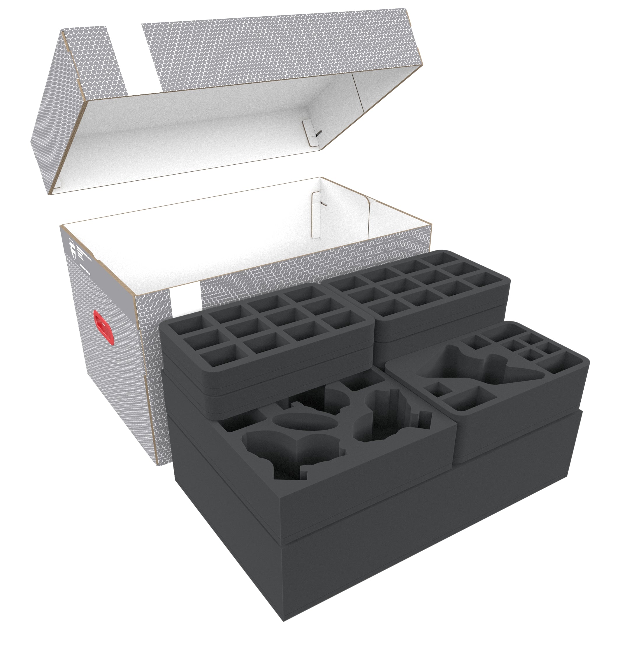 Custom-fit cut compartments reliably protect your miniatures from damage. The soft foam ensures that your painted units also arrive safely at the game table without scratches.