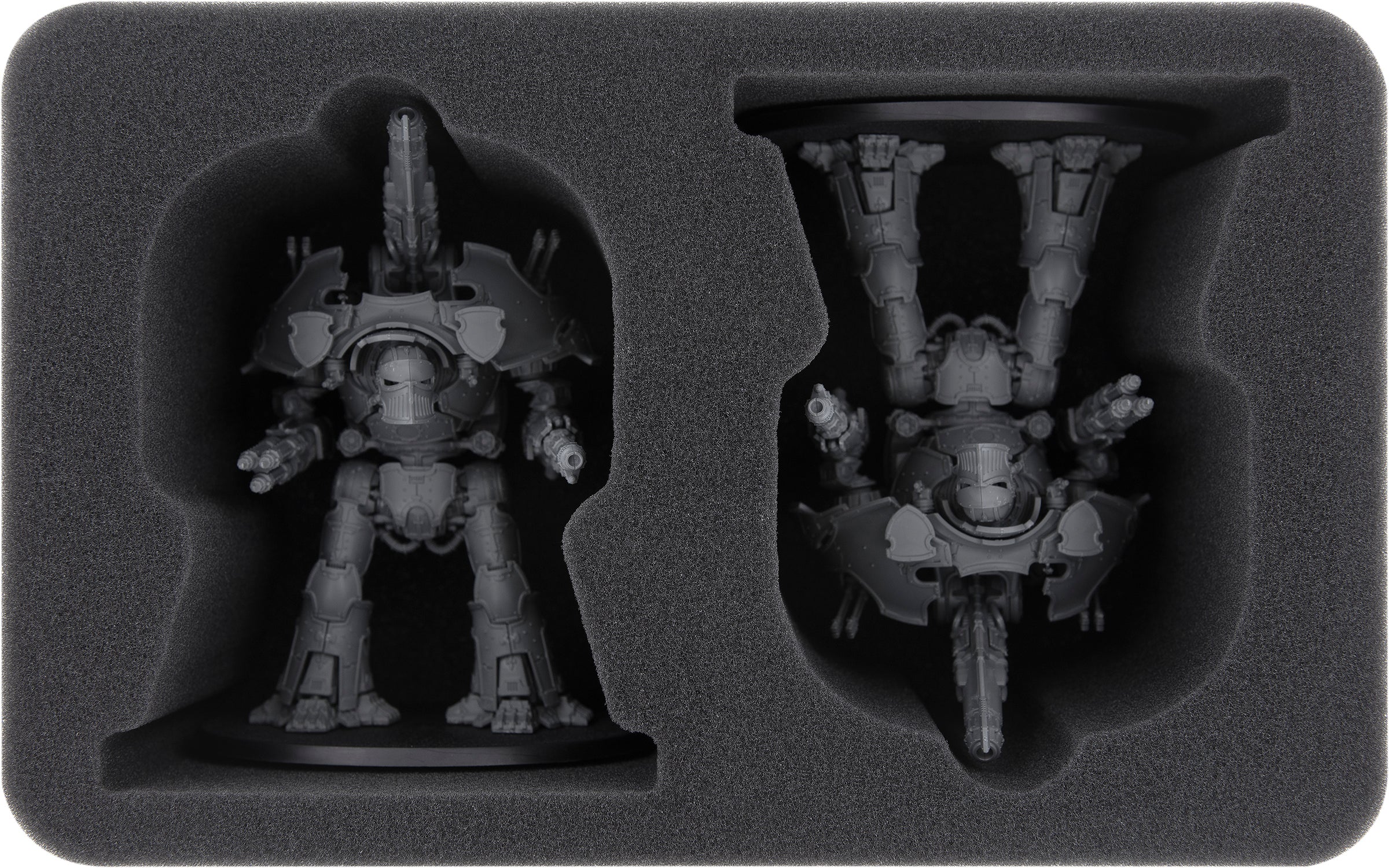 - 1 Half-Size foam tray with two miniature-specific compartments for Armiger Helverins and Warglaives (HS105A002)