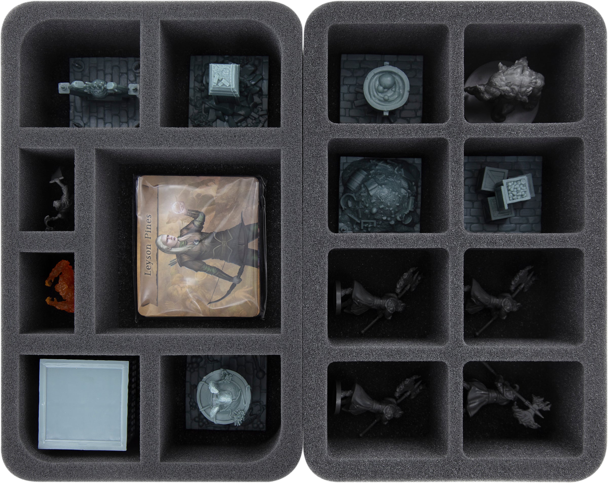 From simple Minion to giant Boss, Hero to Villain, Book Case to Altar of Greed - every enemy model, hero, character and terrain piece gets its own custom-fit compartment. Surrounded by soft, fine-pored foam, your figures are optimally protected during transport. Don’t be afraid of scratches or chipping paint, these annoyances are reliably prevented because of the foam.