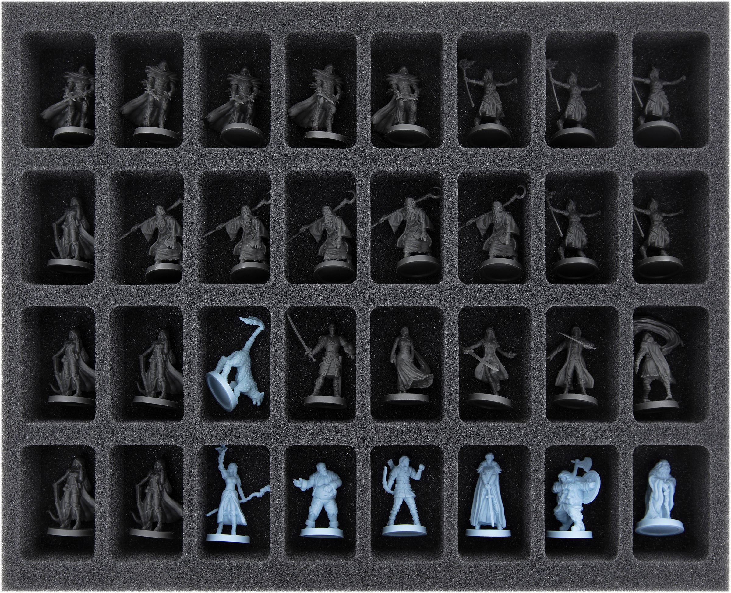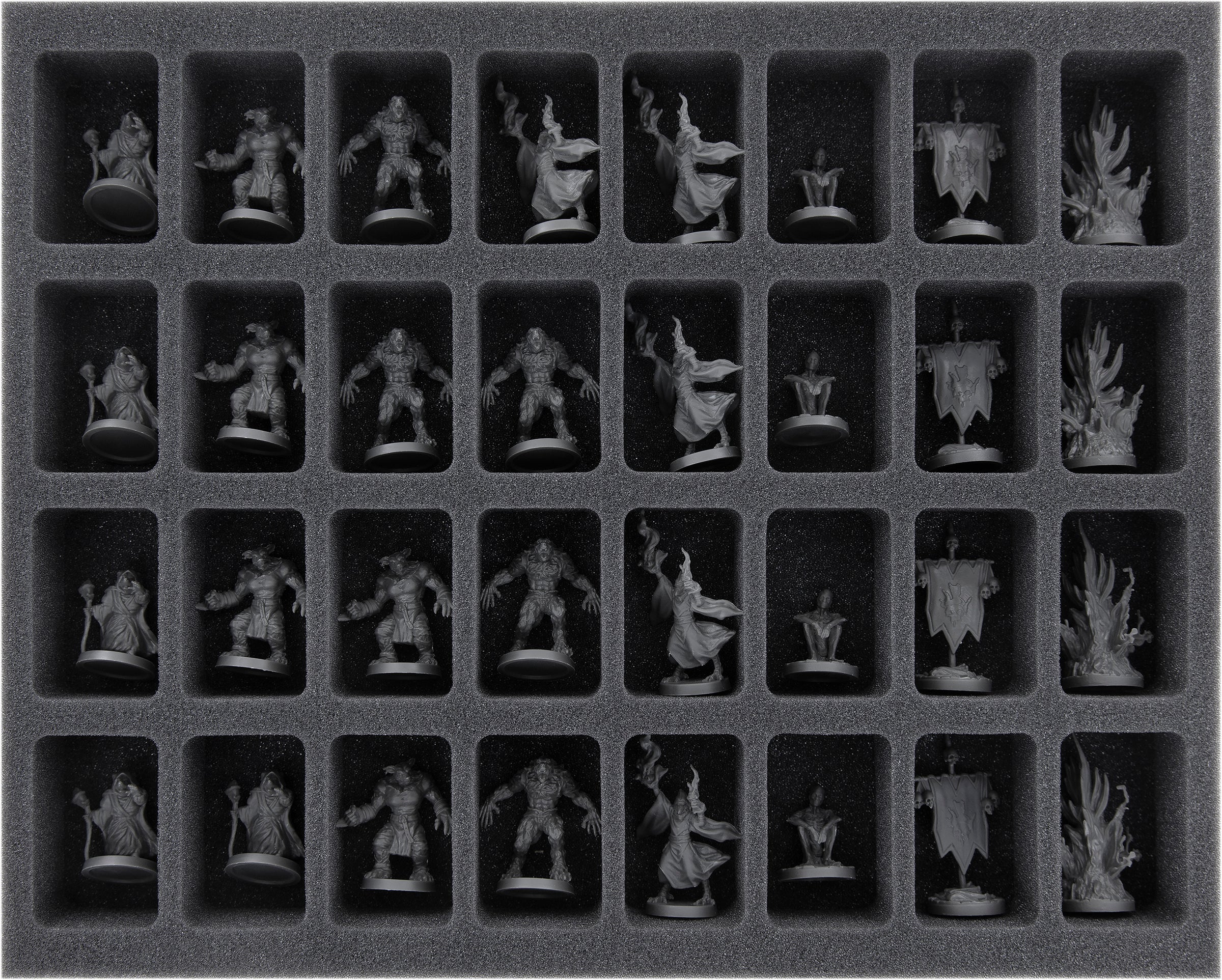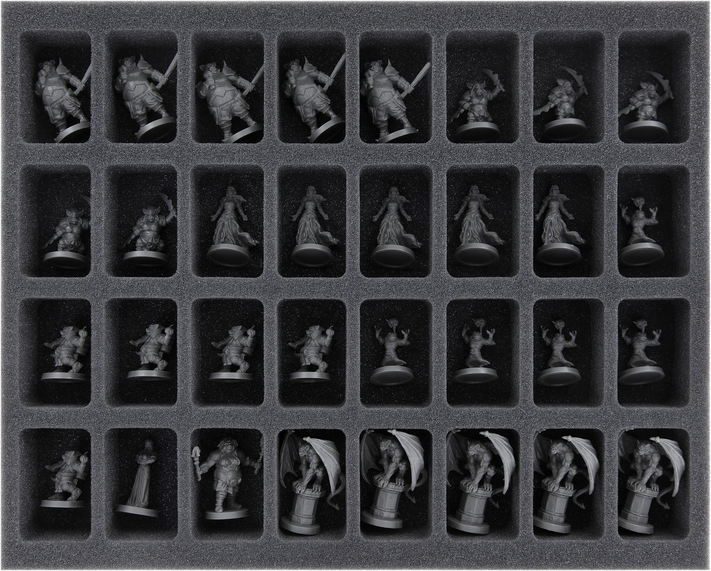 - 3 Full-Size foam trays with 32 compartments each for miniatures (FSMEDS040BO)
