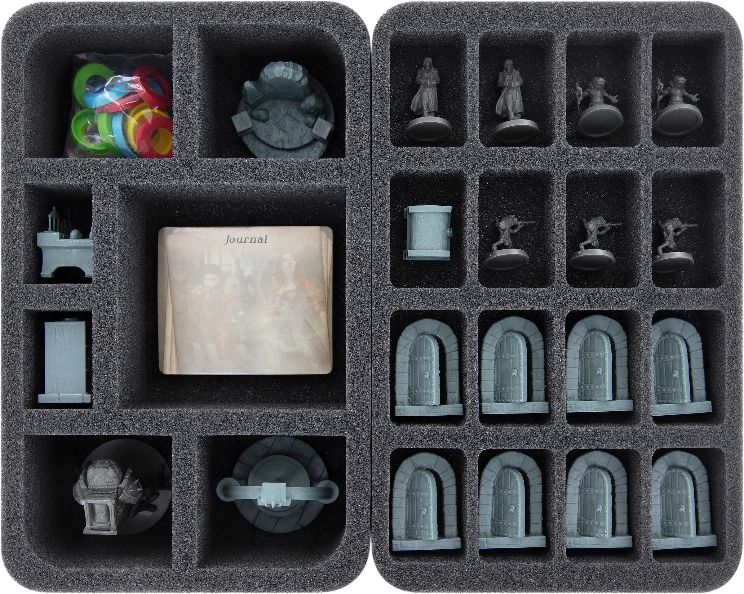 - 1 Full-Size foam tray with 13 Compartments for cards and tokens (FSLG050BO)