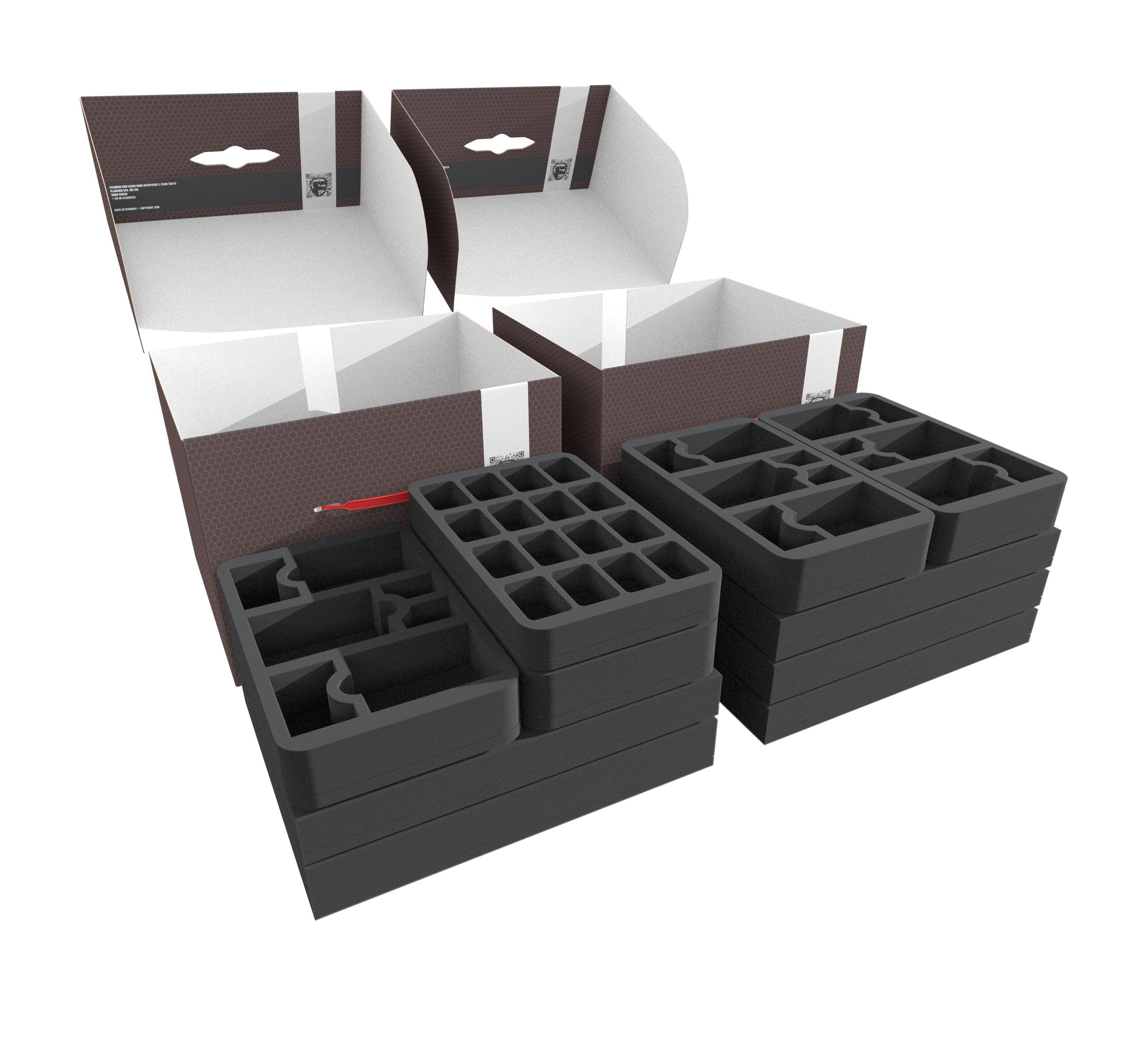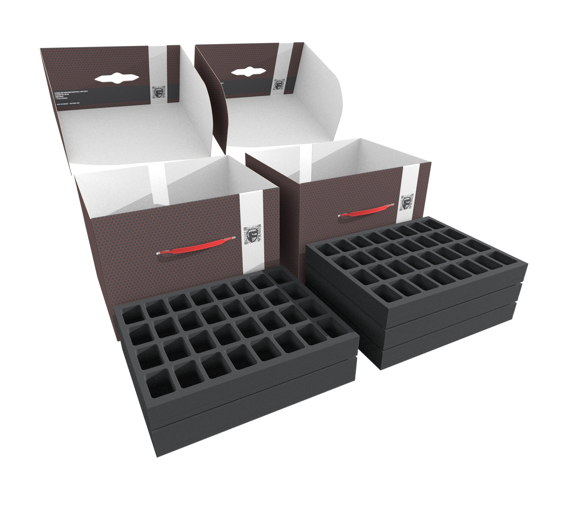 - 2 Half-Size foam trays with 16 compartments each for miniatures (HS035BF05BO)