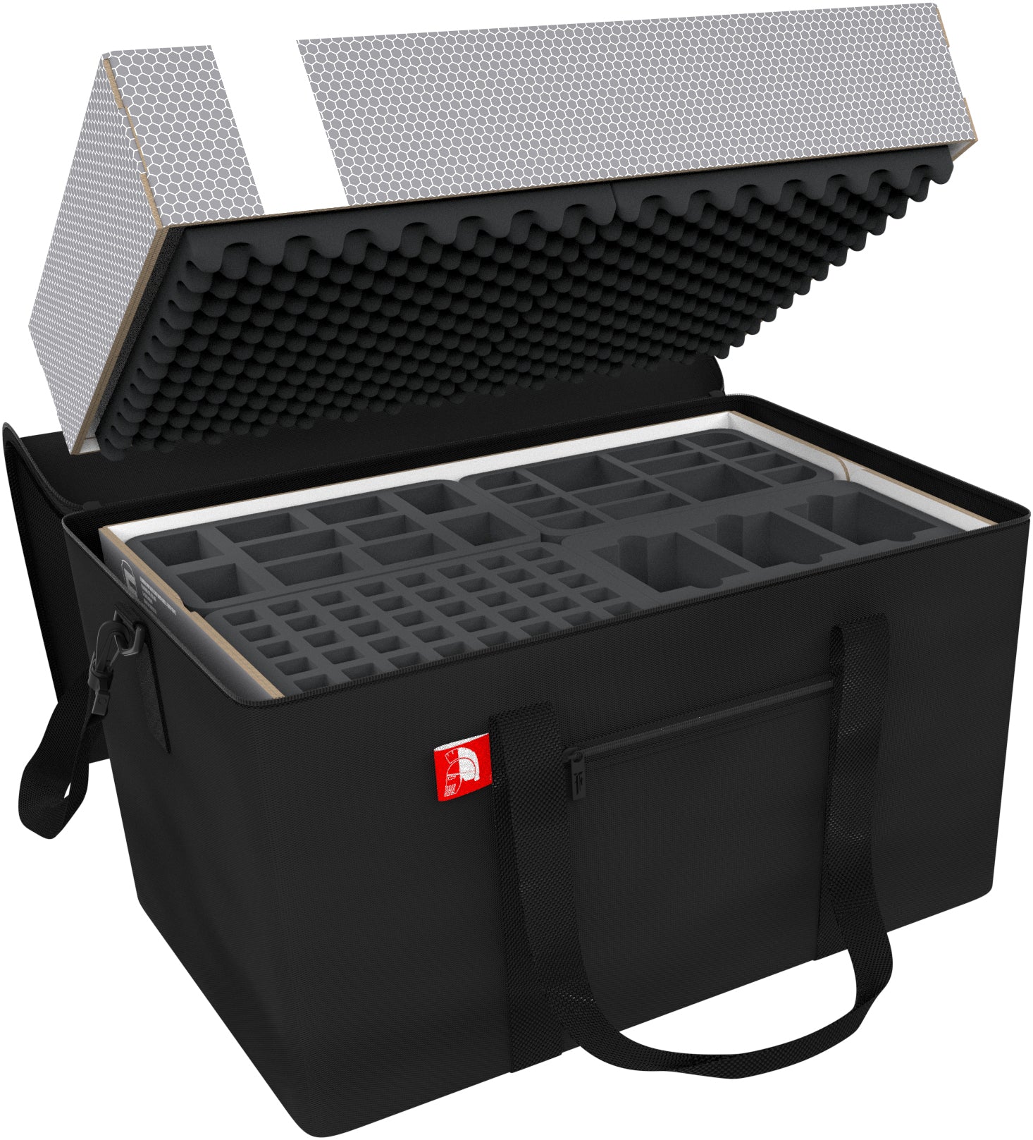 The set completes with a matching foam topper and two convoluted foam insert. The foam topper helps to adjust the height of the stacks of trays in the storage box, the convoluted foam insert are placed on the trays to cover them so that nothing can fall out.