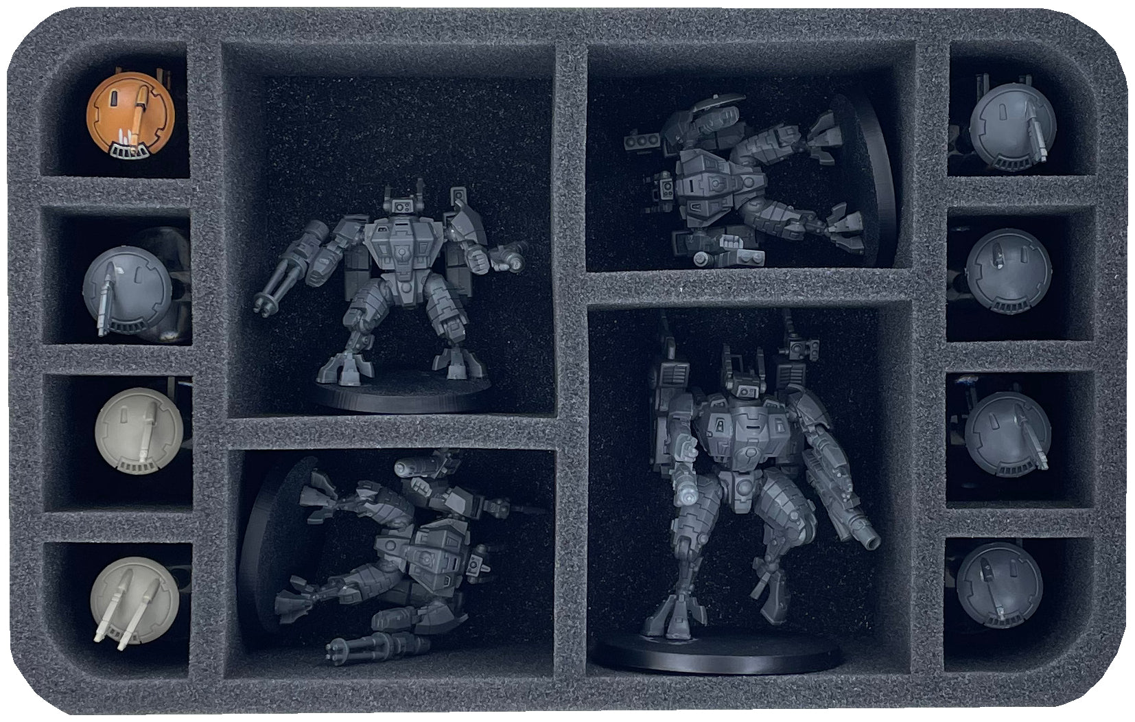 - 1 Full-Size foam tray with 8 compartments for a commander with XV85 / XV86 battlesuit (FS075A001)
