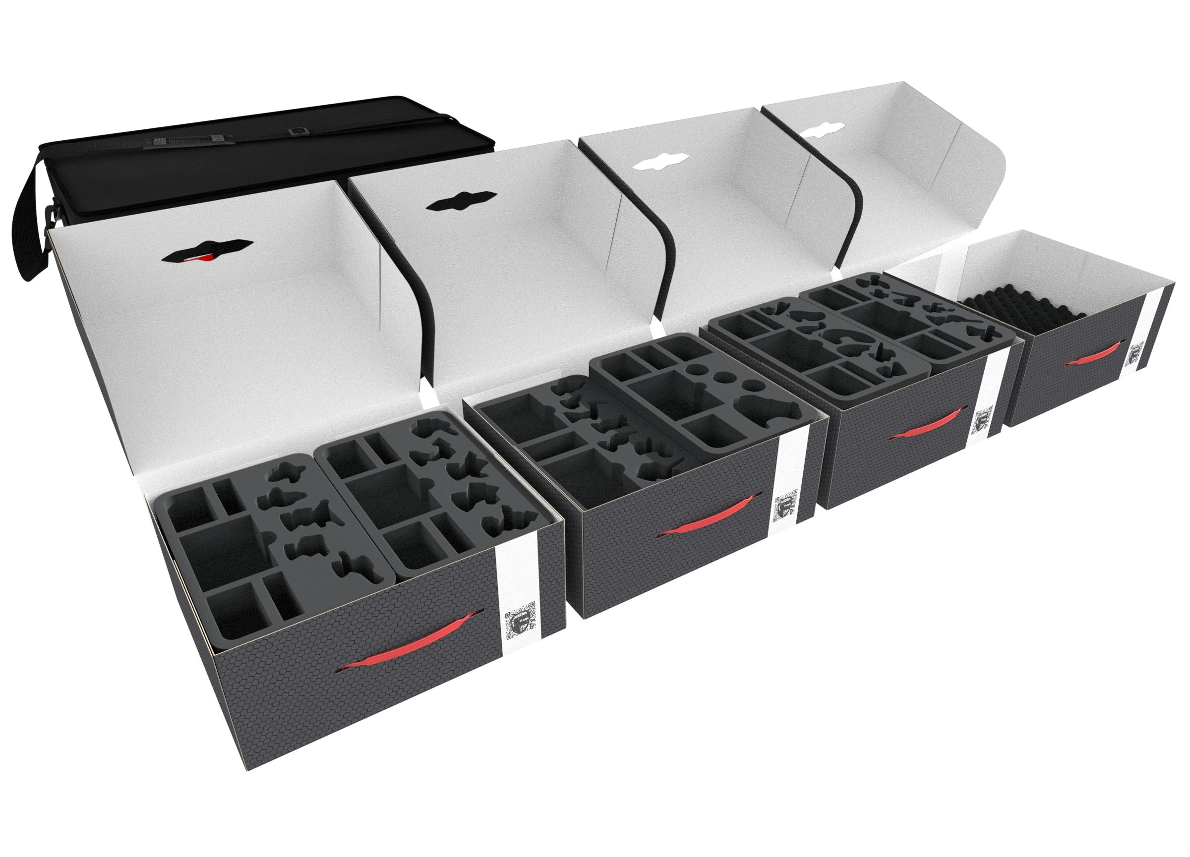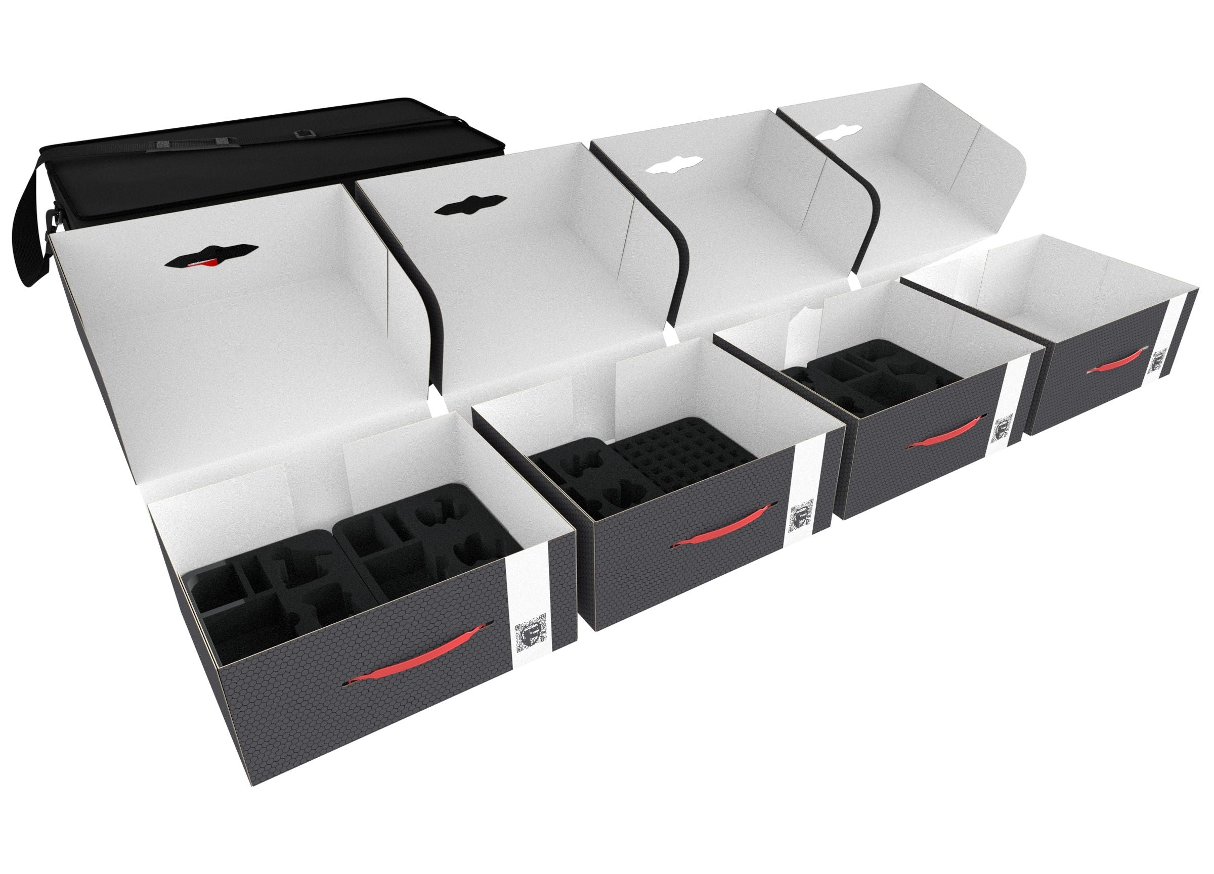 And for those who want to know their warrior models in safety, there is now this great complete package with all foam inserts for the 16 warbands and the Arcane Hazards, distributed in three Storage Boxes. As a bonus there is a fourth Storage Box M, so that you will be ready for the upcoming third season. Alternatively, you can store game boards and other accessories in it.