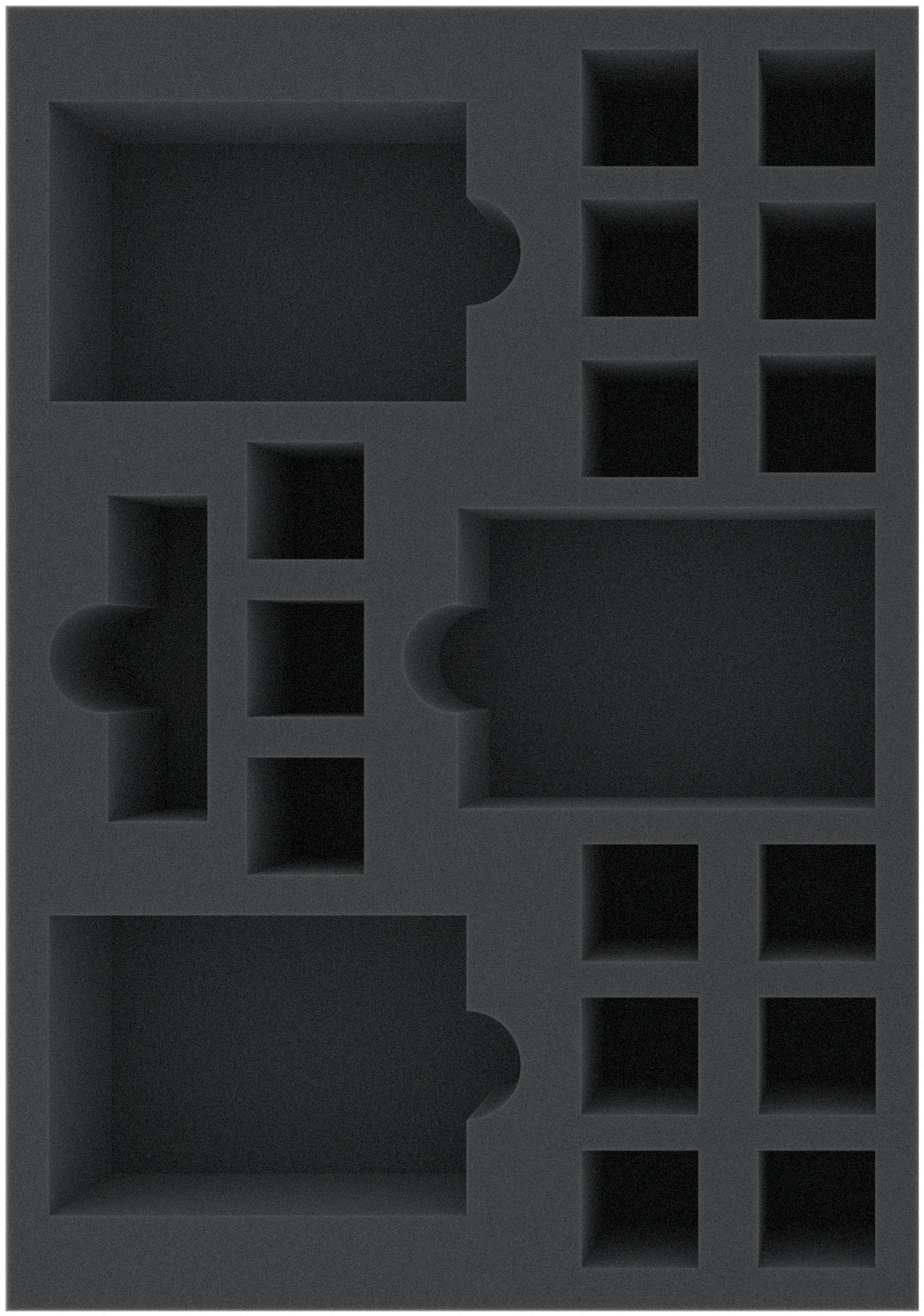 This 55 mm high foam tray is divided into 19 compartments. It is particularly suitable for the safe storage of tabletop and board game miniatures, as well as other fragile models and small parts.