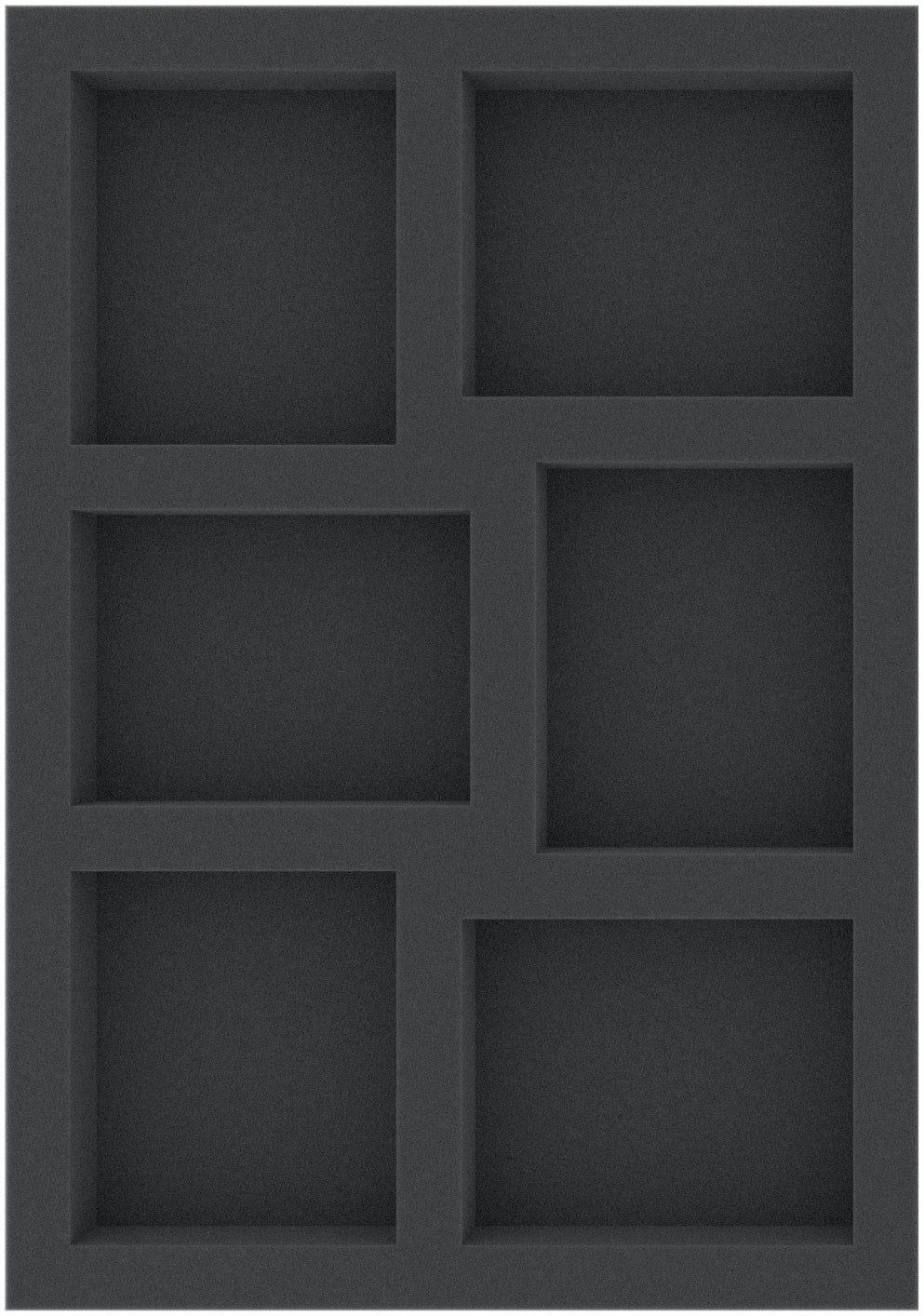 This 30 mm high foam tray is divided into 6 compartments. It is particularly suitable for the safe storage of tabletop and board game miniatures, as well as other fragile models and small parts.