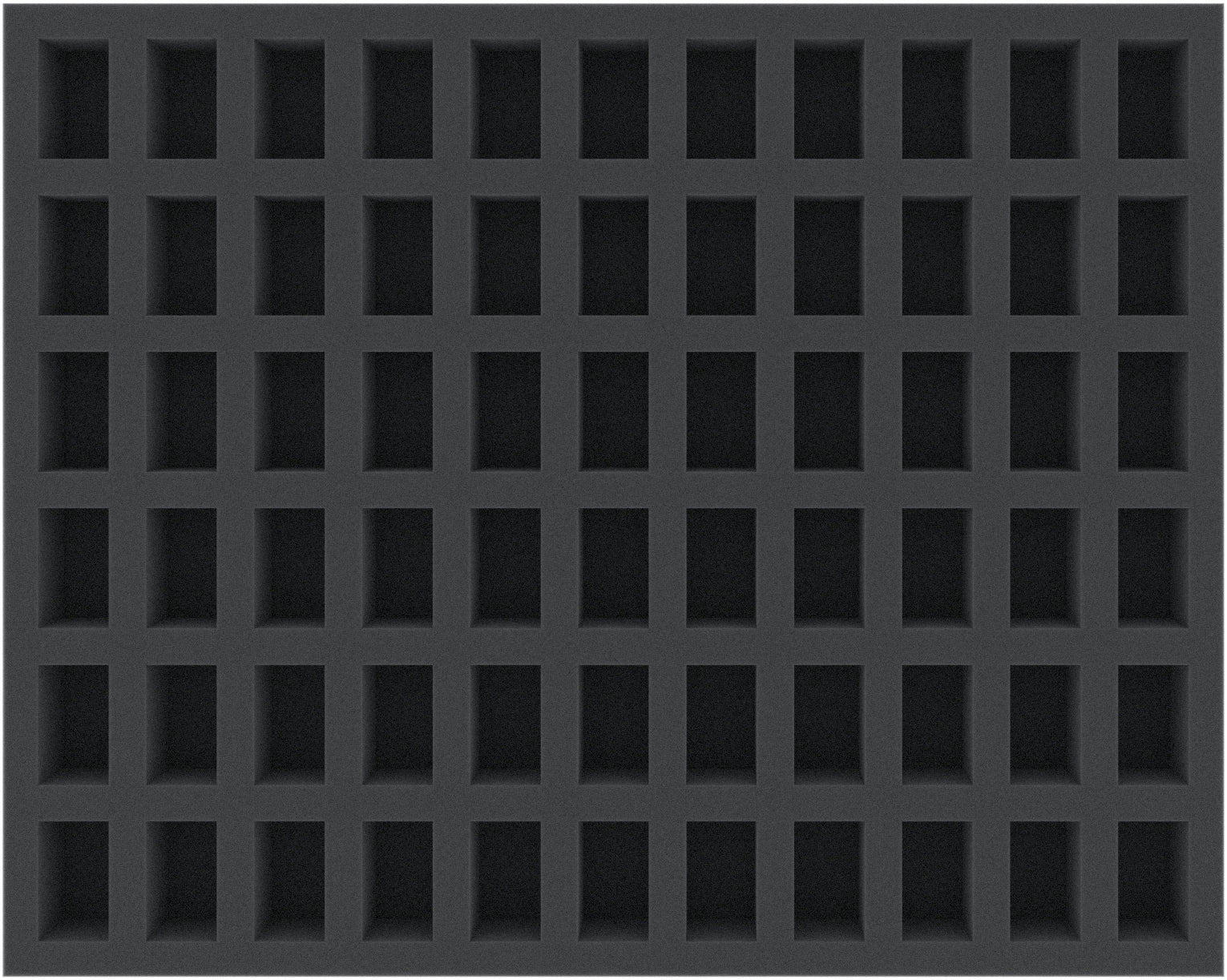 This Feldherr foam tray has 66 same-sized compartments for the clear and safe storage of wargaming miniatures in scale 1:100 (15 mm). The tray is thus ideally suited for miniatures of e. g. the games "Flames of War" or “Dropzone Commander".