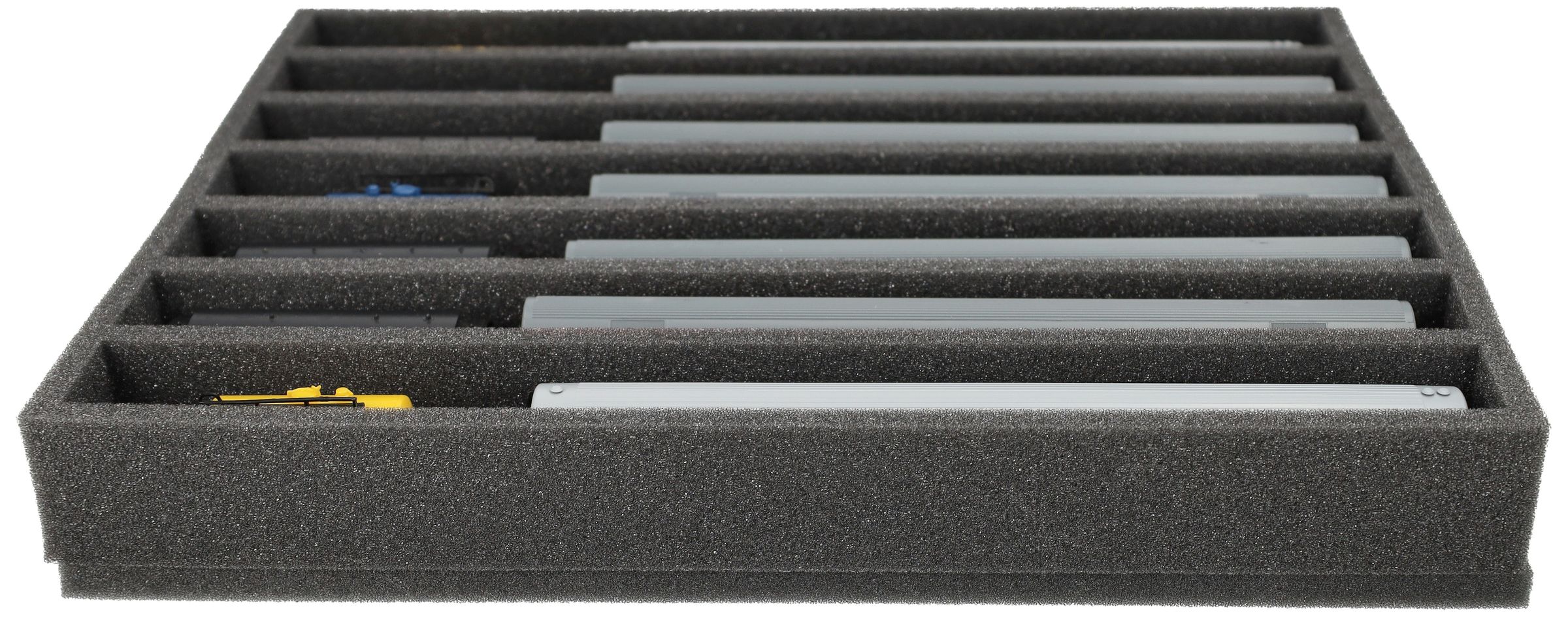 Soft, comfortable and safe! Foam insert for railways in gauge N. The wagons and locomotives are stored standing.