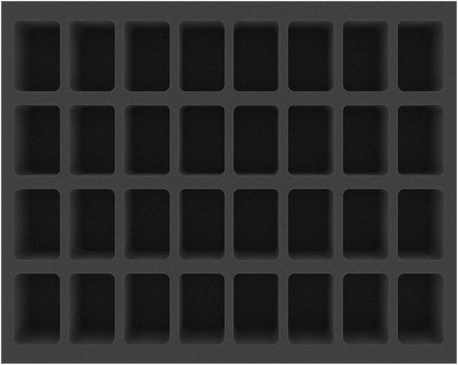 This Feldherr foam tray has 32 same-sized compartments for the safe and orderly storage of "Infinity The Game" miniatures on 25 mm bases. The fine-pored foam provides reliable protection against damage – fragile parts stay intact, the color of painted models remains unharmed.