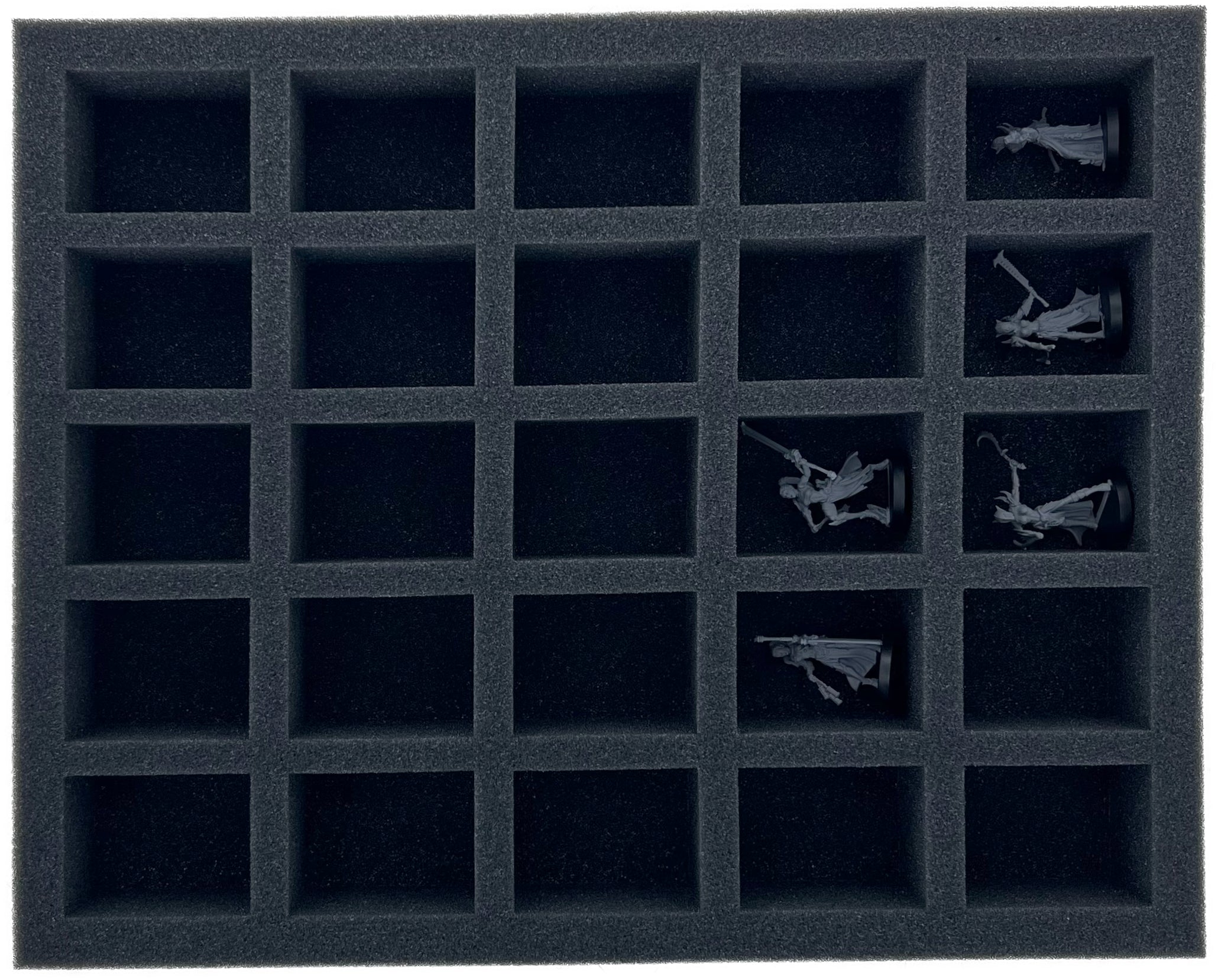 On this Feldherr Full-Size foam tray you have space for up to 25 miniatures of your army. The insert is ideal for storing models on up to 40 mm bases