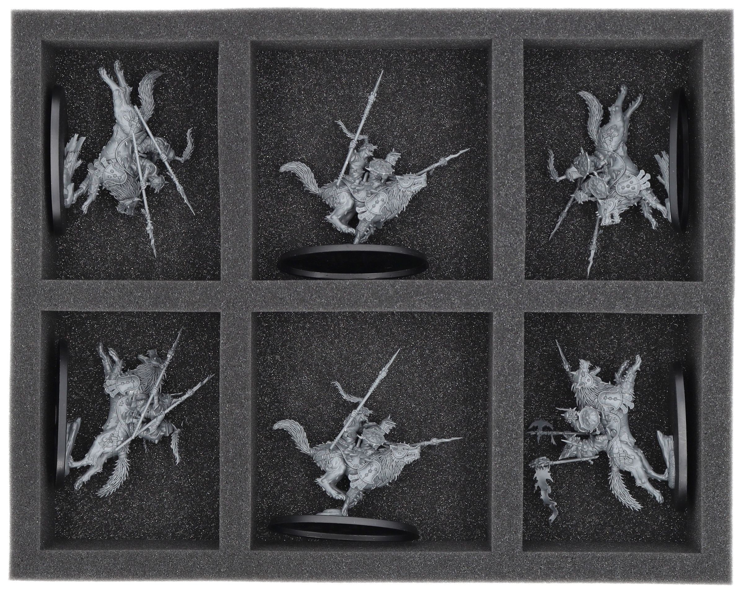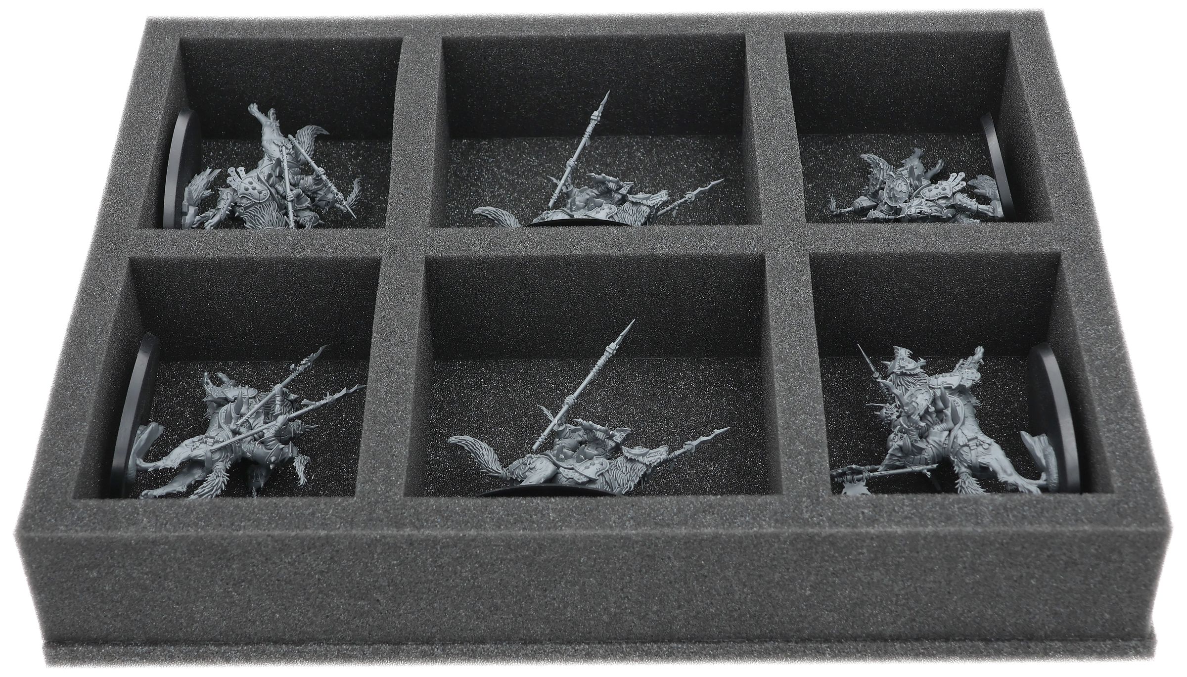 On this Full-Size foam tray you have 6 compartments in which up to 18 larger models of your Gloomspite Gitz army can be safely and neatly accommodated.
