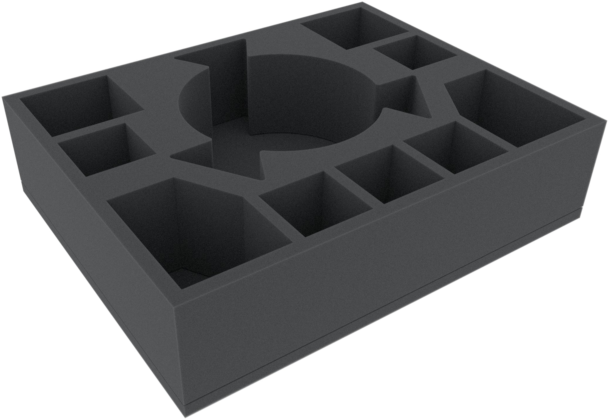 The insert has 10 compartments, with one custom-cut compartment to fit a single Skaven Gnawhole. This gives the miniature a tight fit and prevents it from sliding around during transport. The soft, fine-pored foam prevents the wooden beams from bending or breaking. In addition, the colors of your painted model are safe from unwanted scratches and paint abrasion.