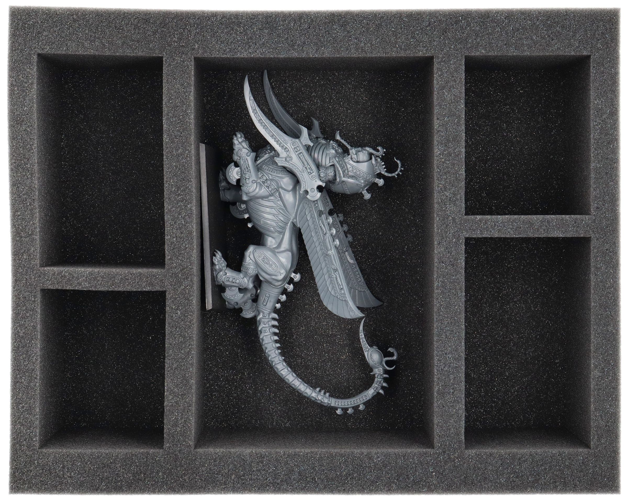 This 110 mm high foam tray is divided into 5 compartments. The large compartment is particularly suitable for securely storing the Nekrosphinx or other bulky miniatures with similar dimensions. The War Sphinx variants do not fit into this insert.