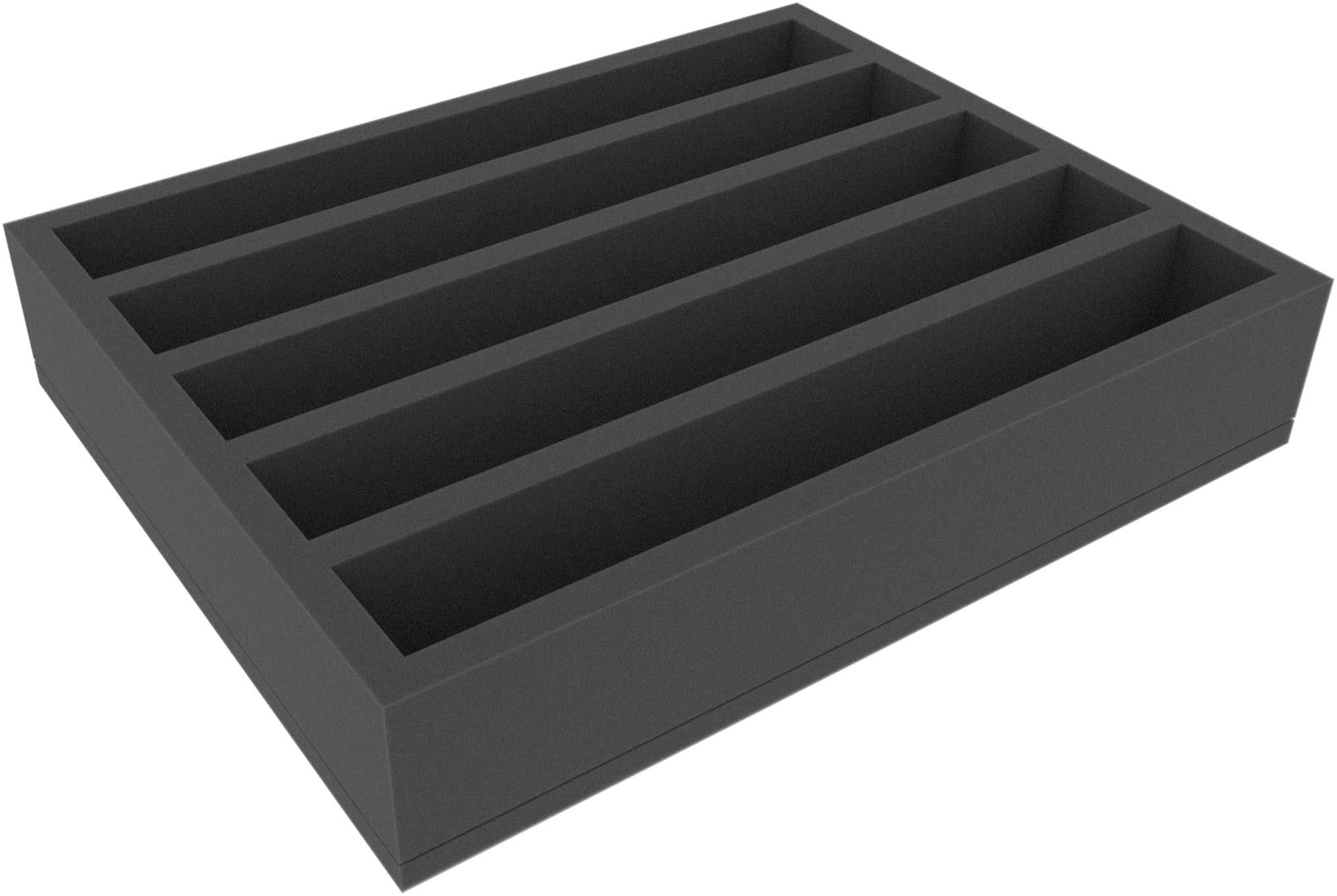 The foam tray has the dimensions: 345 mm x 275 mm x 40 mm total height (55 mm usable height + 10 mm foam base).