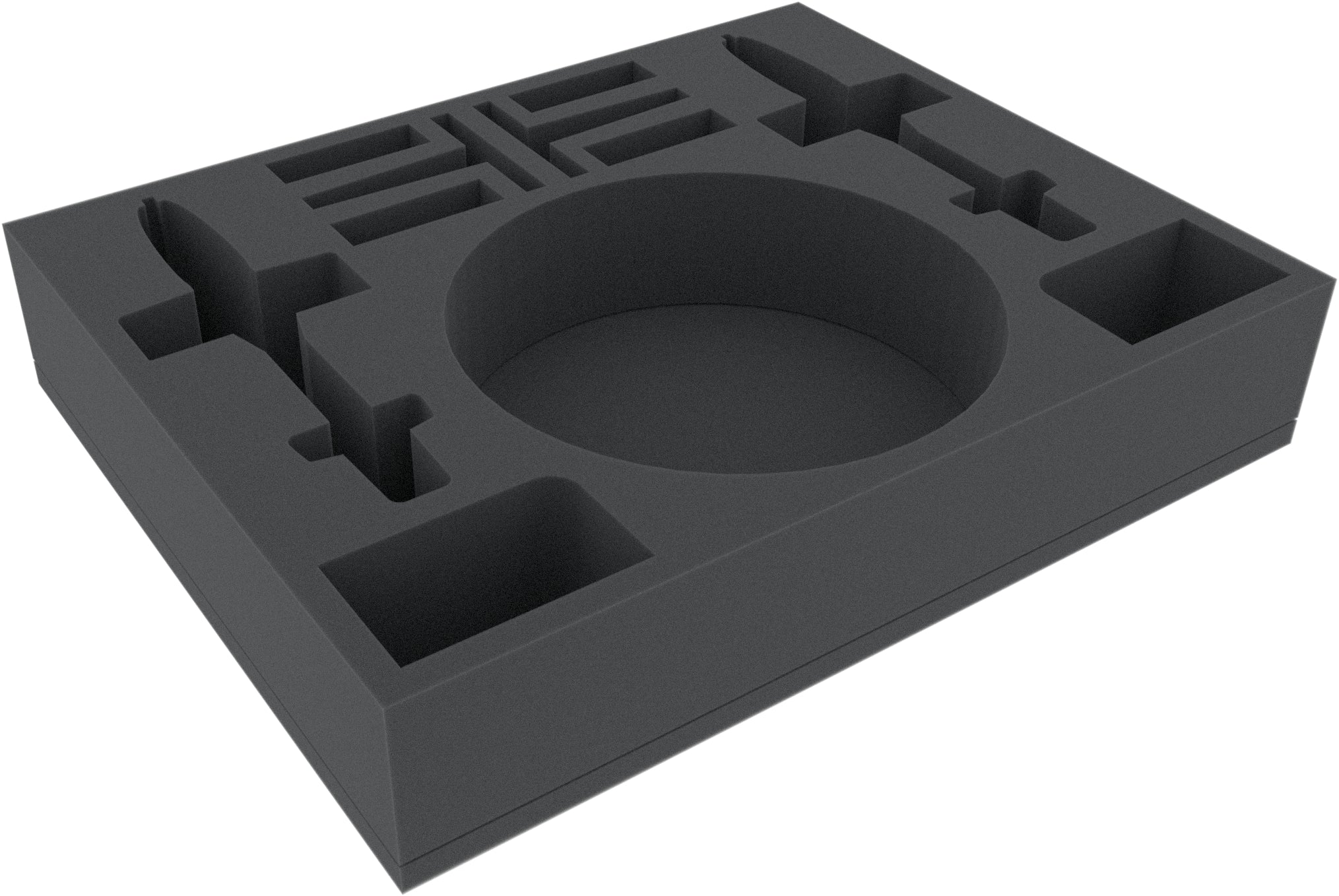 The Feldherr Full-Size foam tray has the following dimensions: 345 mm x 275 mm x 65 mm total height (55 mm usable height + 10 mm foam base).