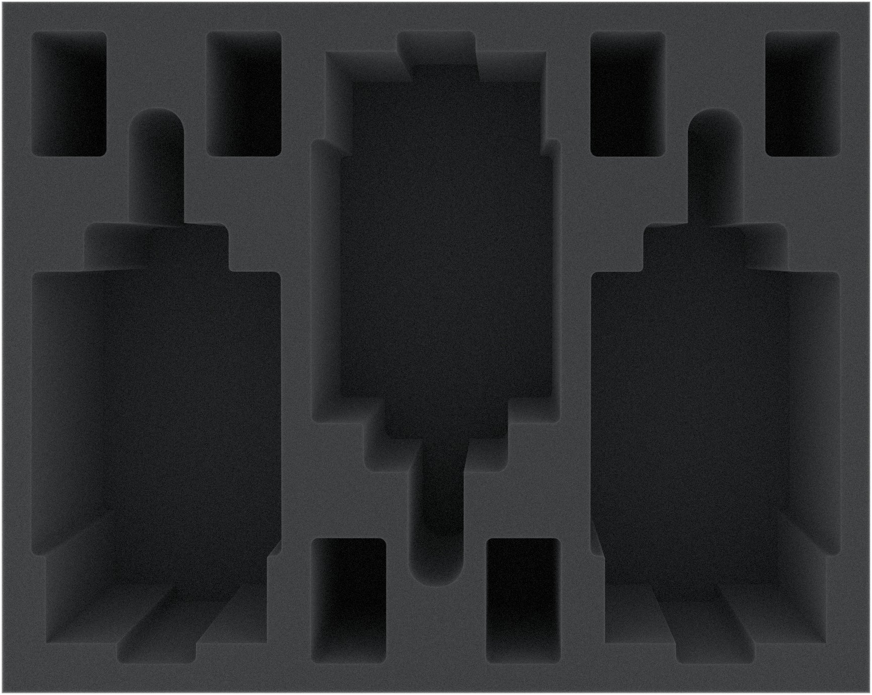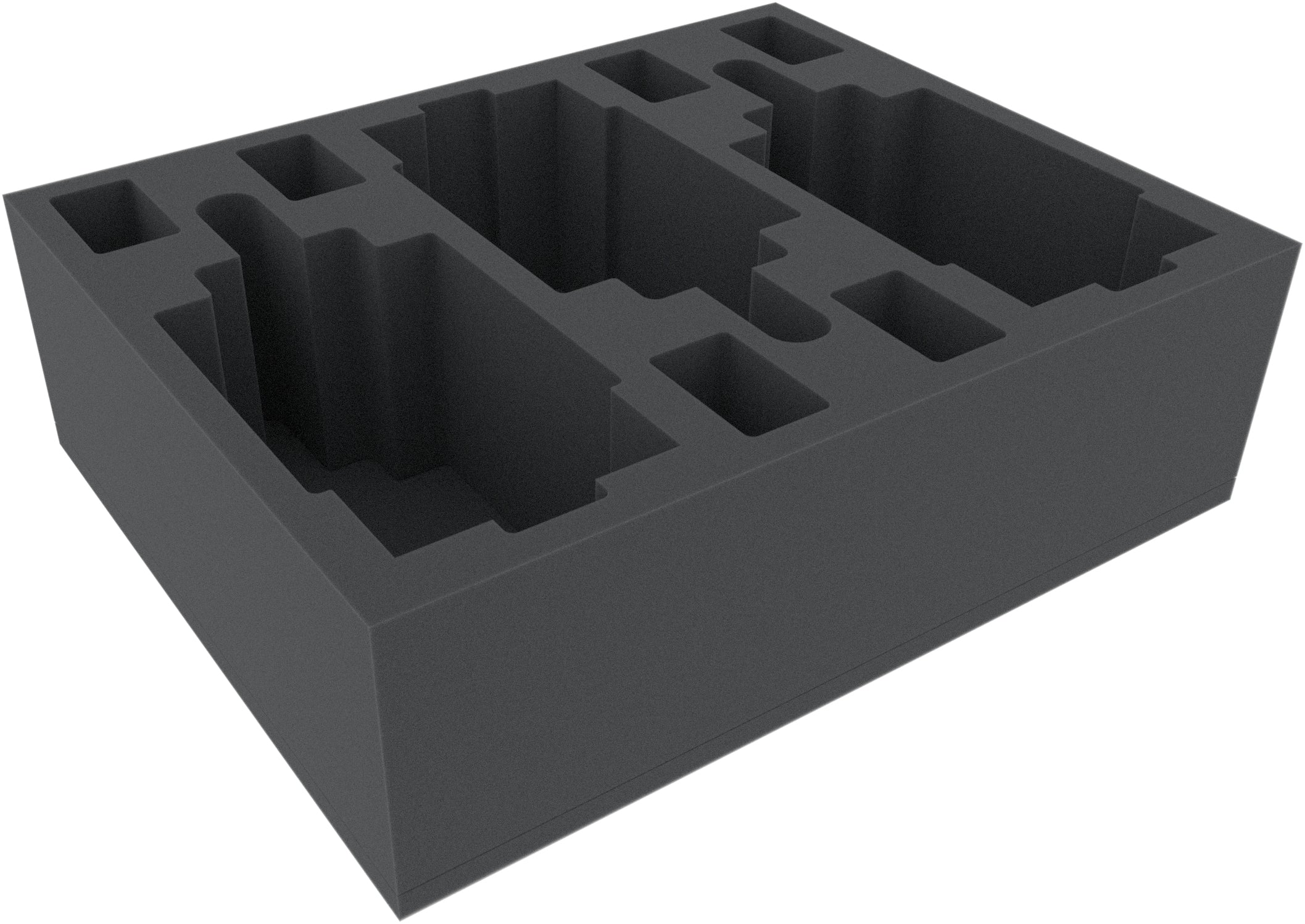 The Full-Size foam tray has the dimensions: 345 mm x 275 mm x 105 mm total height (95 mm usable height + 10 mm foam base)