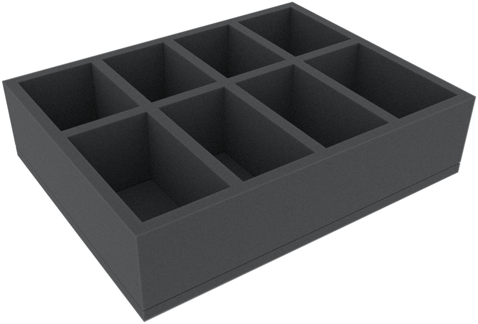 This 75 mm high foam tray is divided into 8 compartments. It is particularly suitable for the safe storage of tabletop and board game miniatures, as well as other fragile models and small parts.