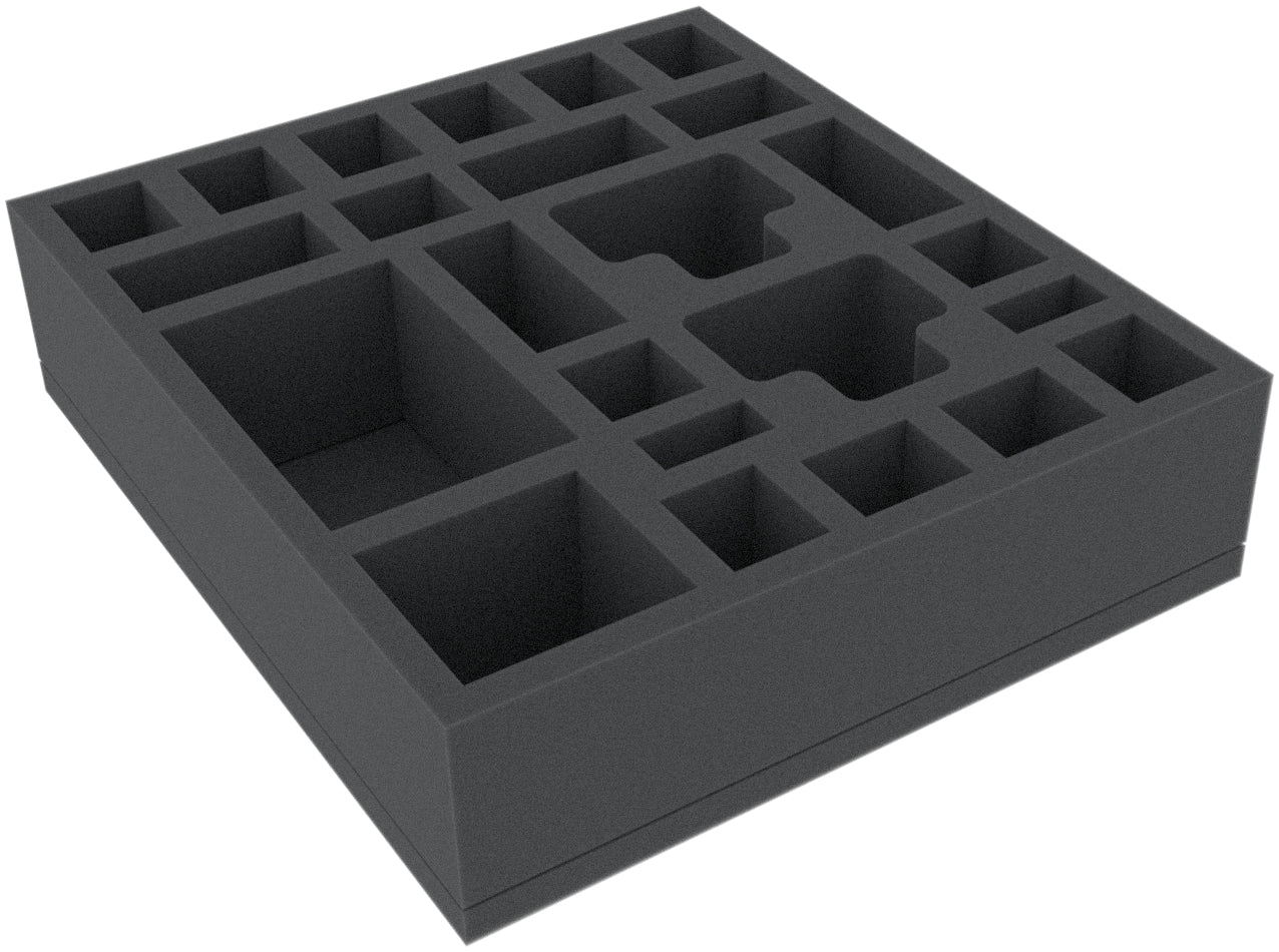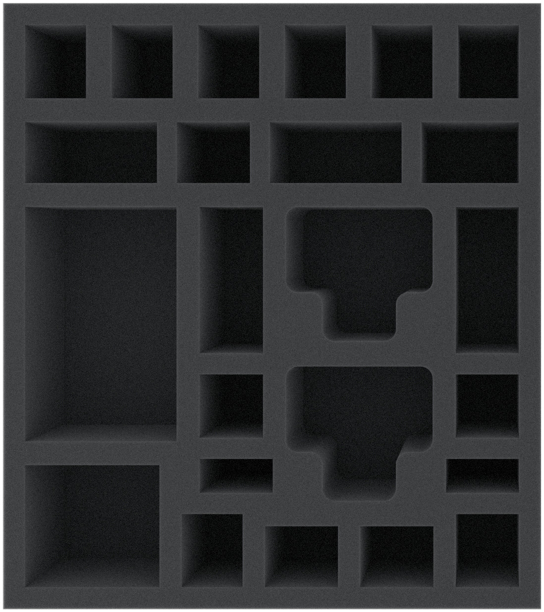 This 60 mm high foam tray is divided into 24 compartments. It is particularly suitable for the safe storage of tabletop and board game miniatures, as well as other fragile models and small parts.