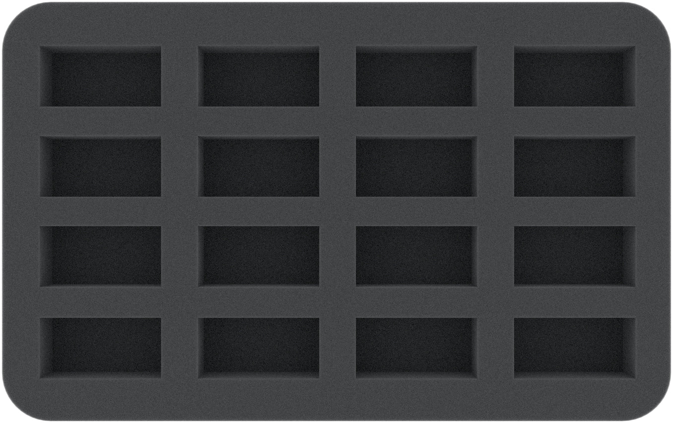 On this Half-Size foam tray you have space for up to 16 miniatures of your army. The insert is especially suitable for storing the Mortek Guard, for example.