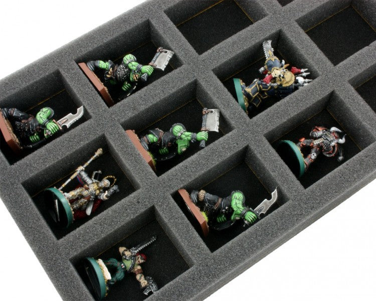 Esta bandeja de espuma Half-Size está dividida en 12 compartimentos. La esterilla es especialmente adecuada para el almacenamiento seguro y claro de miniaturas y material de juego.