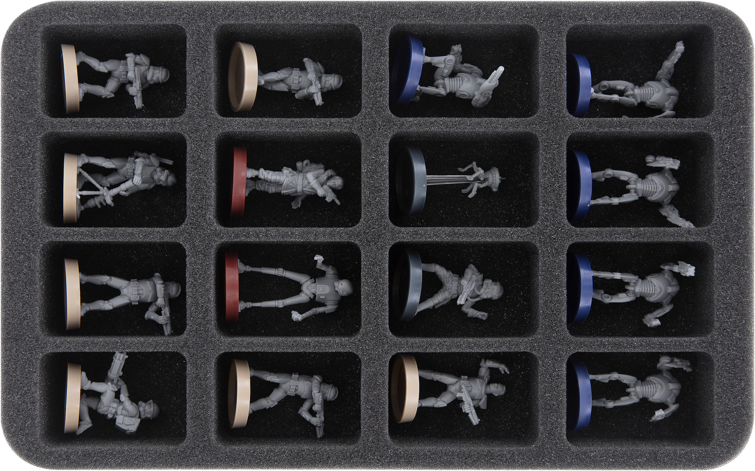In the total of 16 compartments of our half-size foam tray for Star Wars: Legion can be accommodated up to 16 miniatures.
