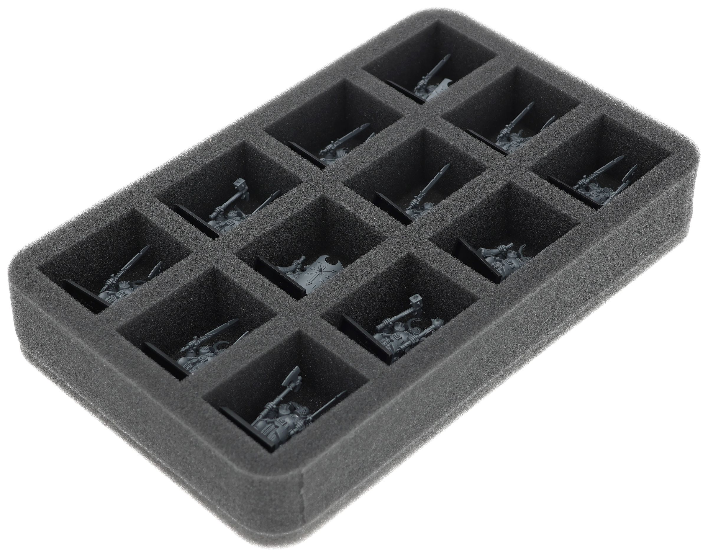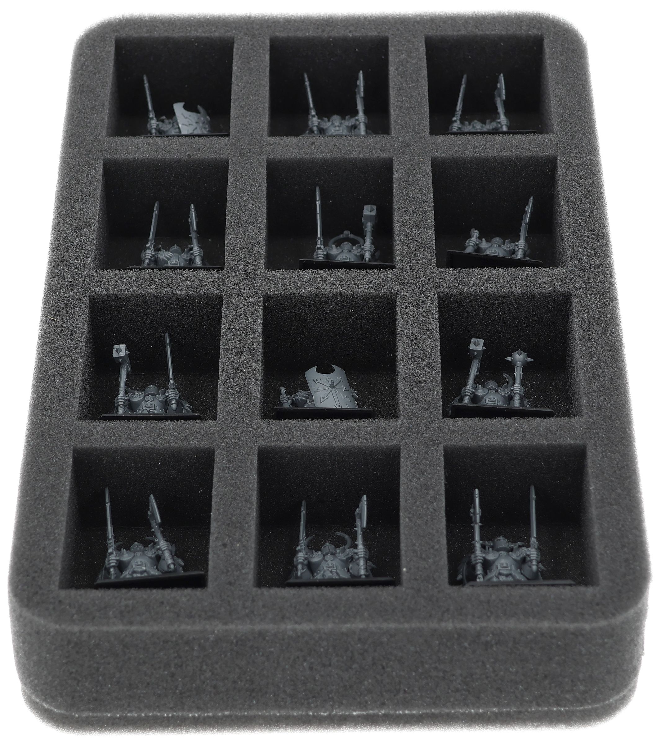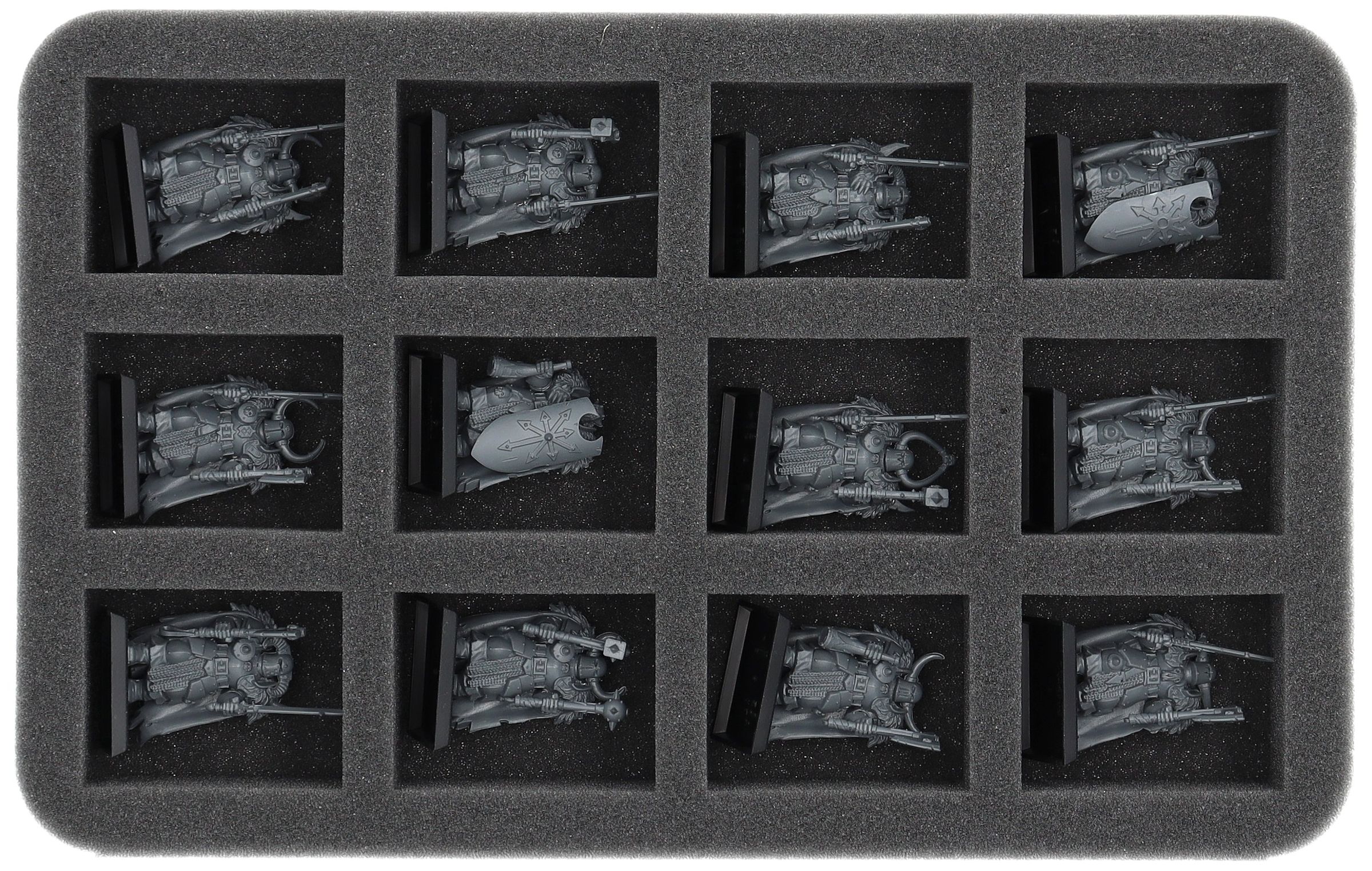 On this Feldherr foam tray you have space for up to 12 miniatures of your army. The insert is especially suitable for storing the Chaos Marauders, Chaos Warriors and similar sized models.