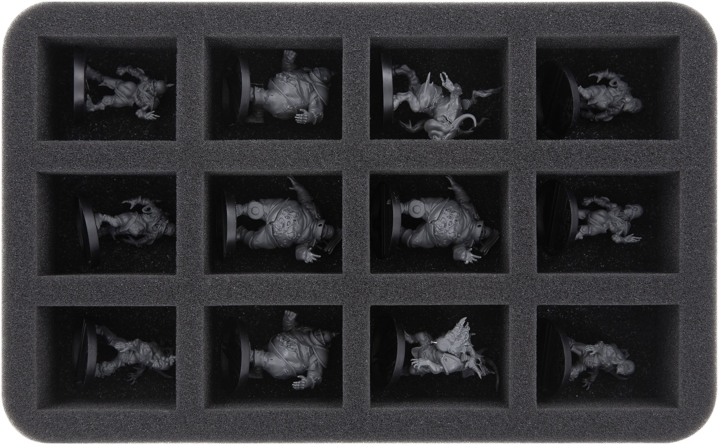 This Half-Size foam tray has 12 compartments to protect your Blood Bowl miniatures aside the pitch. It allows you to store your models neatly and securely. Sensitive parts of the figures are protected from damage and the painted miniatures are preserved.
