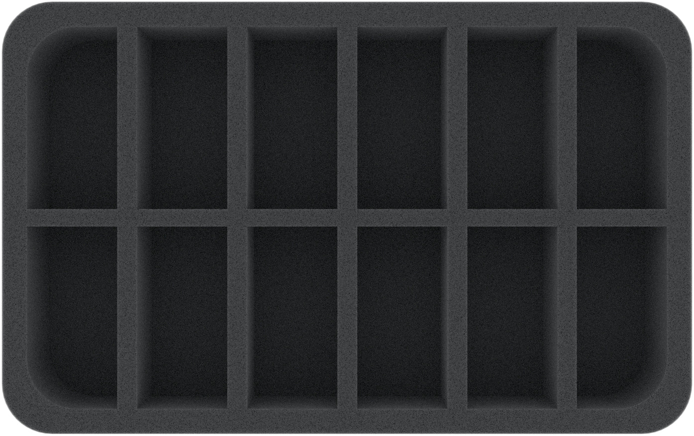 12 different sized compartments on this Half-Size foam tray are especially suitable for the neat storage of different vehicle models for Flames of War and Team Yankee.