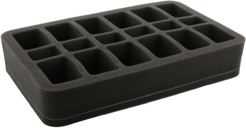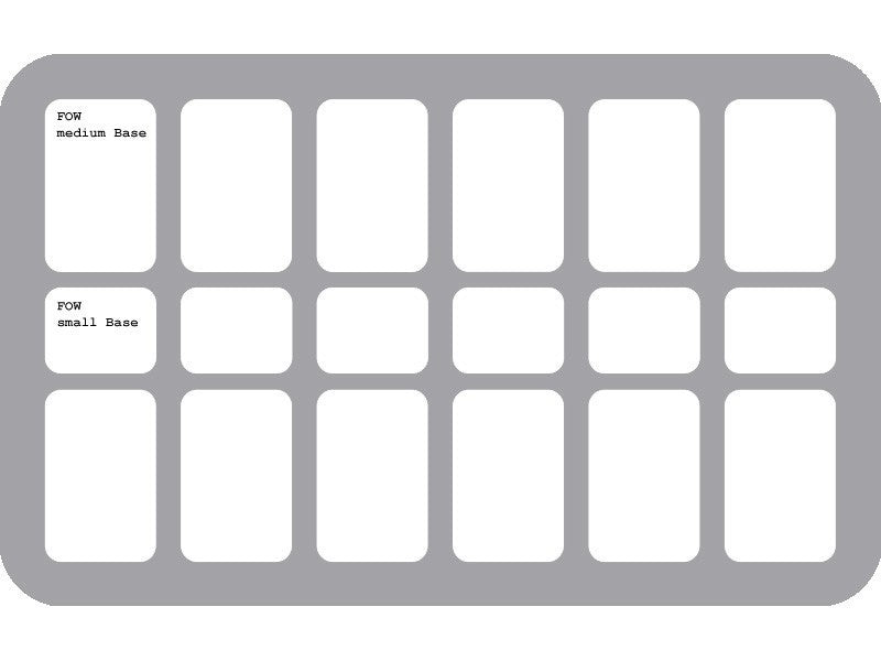 Esta bandeja de espuma Half-Size está dividida en 18 compartimentos de dos tamaños diferentes. Ideal para miniaturas de Flames of War.
