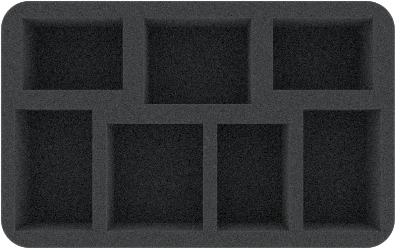 This Half-Size foam tray is divided into 7 compartments. It is particularly suitable for storing miniatures from Unit Boxes, such as "Outriders" and sweeping models.