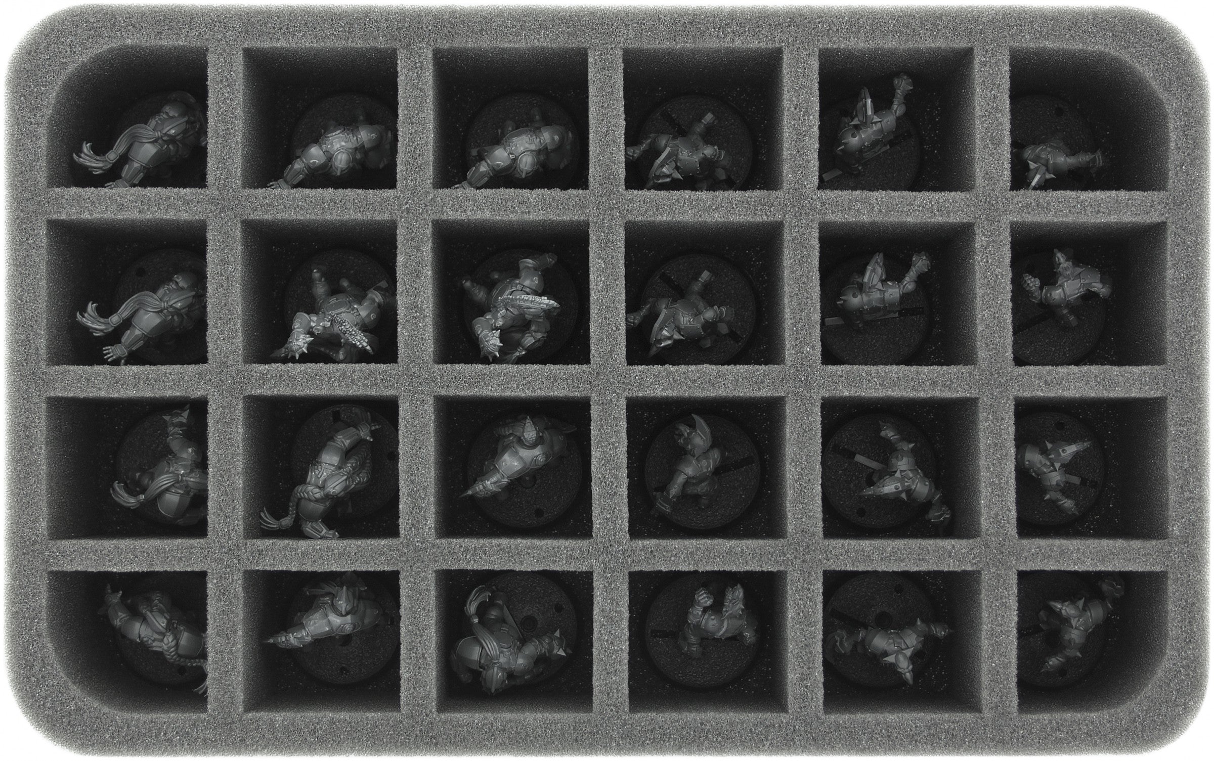 Perfect for 24 Blood Bowl Miniatures - 2016 Edition. This foam tray has 24 slots - each slot 50 mm deep. Ready to use - glued 10 mm foam base.