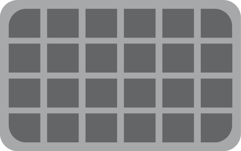 - 4 slots: 36 mm x 33, one rounded corner