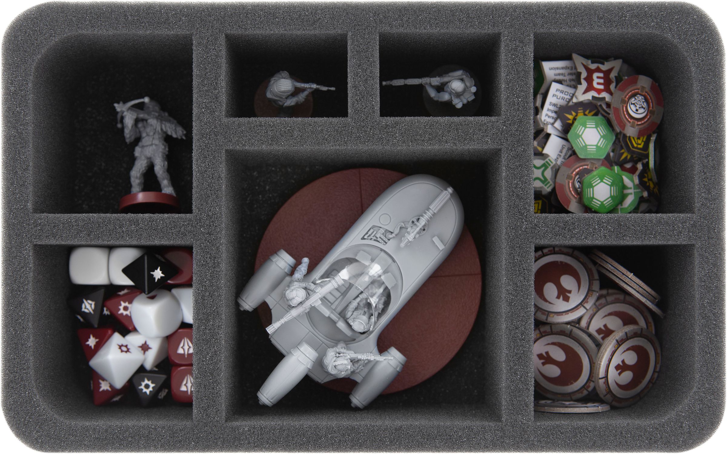 The Landspeeder X-34 Unit Expansion for Star Wars: Legion brings one of the most iconic speeders of the Star Wars saga to your tabletop. To make sure it arrives undamaged and fully armed, here is the suitable Half-Size foam tray to protect your miniature.